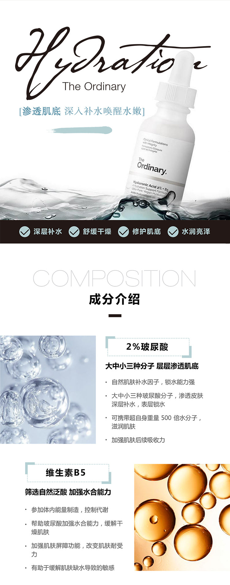 主页 产品推荐 【包邮包税】The Ordinary Hyaluronic Acid 2%透明质酸+B5补水精华液 30ml
