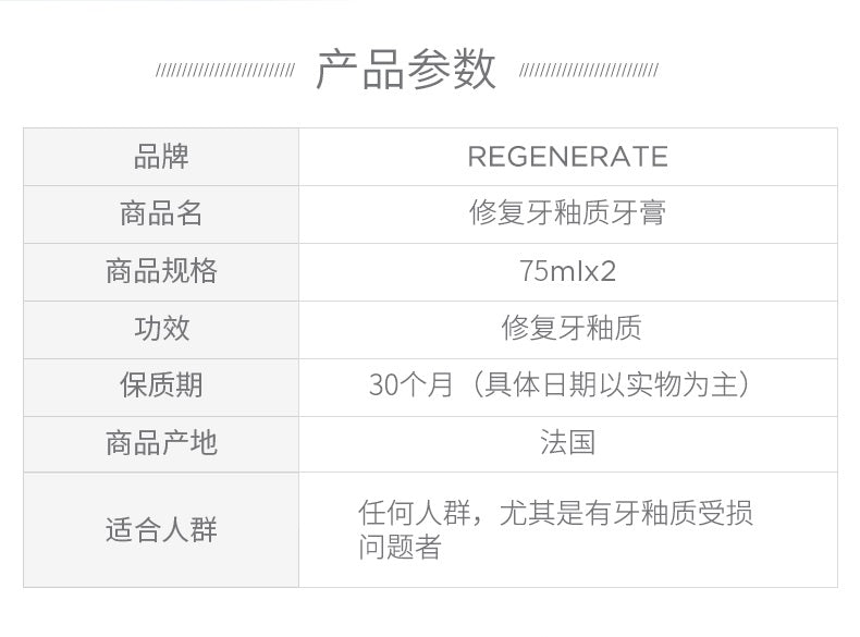 【包邮包税】法国Regenerate修复牙釉质美白瓷白透明牙膏清新口气洁白牙膏去黄去牙渍 75ml
