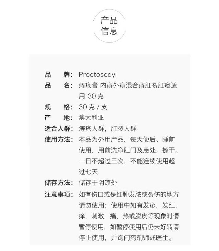 主页 产品推荐 【包邮包税】澳洲Proctosedyl 痔疮膏 30g
