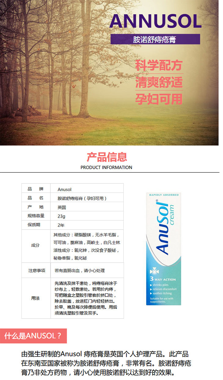 【包邮包税】Anusol痔疮膏软膏 痔疮消肉球男女可用 23g