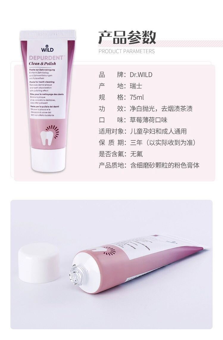主页 产品推荐 【包邮包税】瑞士Dr.wild怀尔德DEPURDENT抛光去烟渍美白鹌鹑蛋牙膏 新版包装 75ml