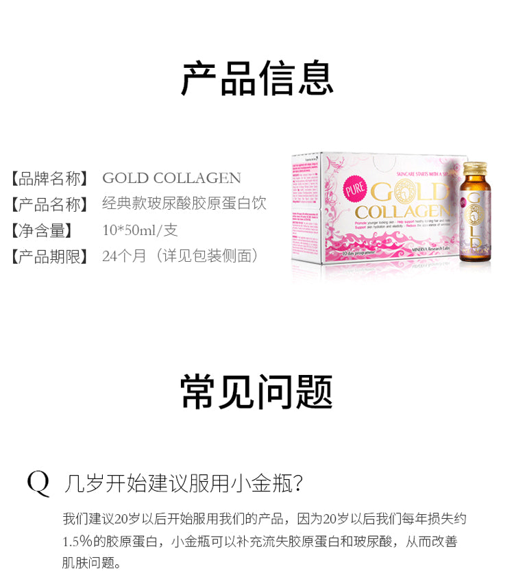 主页 产品推荐 【包邮包税】英国Pure Gold collagen胶原蛋白玻尿酸口服液 50ml*10支