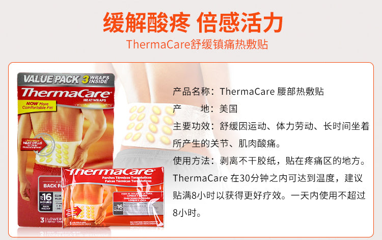 主页 产品推荐 【包邮包税】英国Thermacare 16小时发热热敷舒缓镇痛贴(一盒2张)