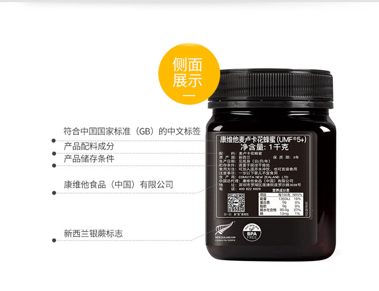 【包邮包税】新西兰Comvita康维他Manuka麦卢卡Honey纯天然野生蜂蜜UMF5+  1kg