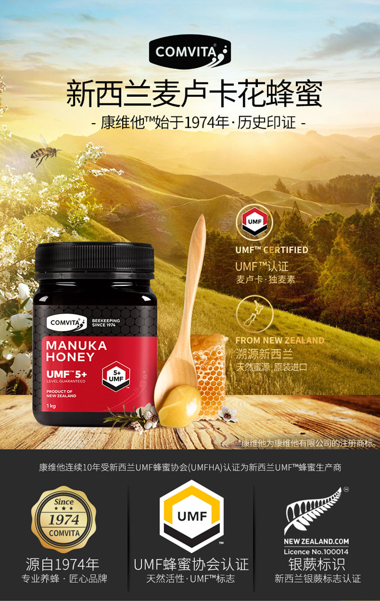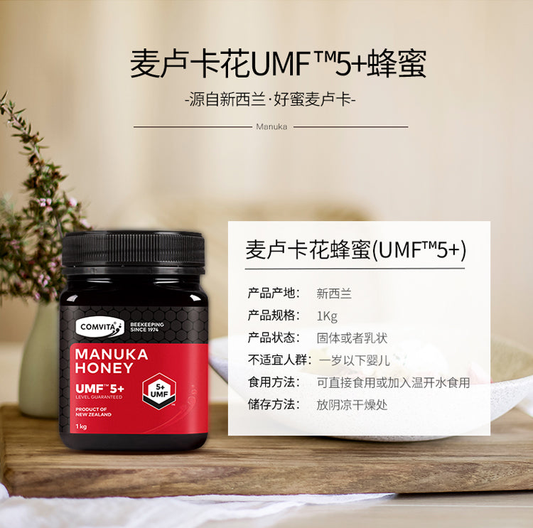 【包邮包税】新西兰Comvita康维他Manuka麦卢卡Honey纯天然野生蜂蜜UMF5+ 1kg