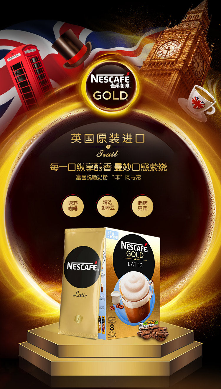 主页 咖啡茗茶 【包邮包税】Nestle GOLD雀巢金牌速溶花式咖啡 LATTE拿铁 19.5gx8条