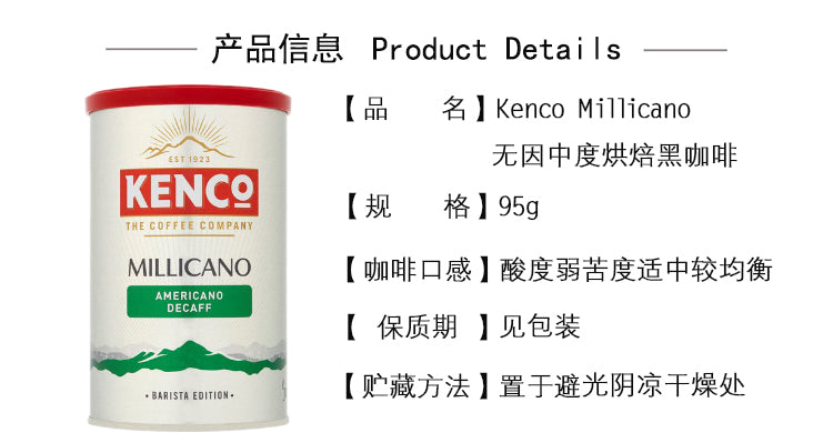 【现货包邮】速溶黑咖啡KENCo Millicano均衡提神苦咖啡 DECAFF无咖啡因 100g