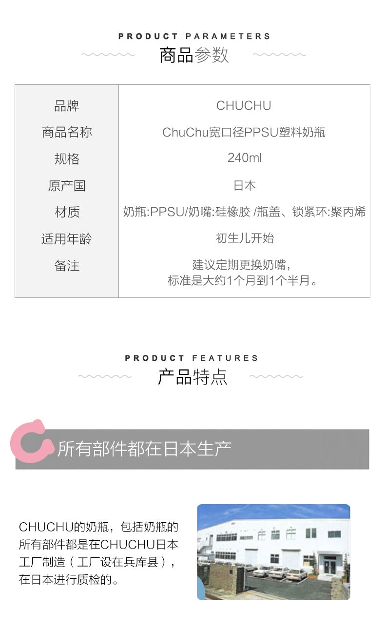 【包邮包税】日本啾啾BABYCHUCHUBABY马卡龙PPSU奶瓶 蓝色 本土版 240ml