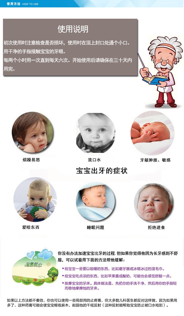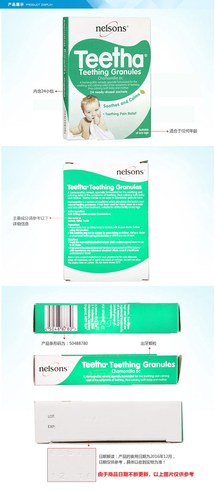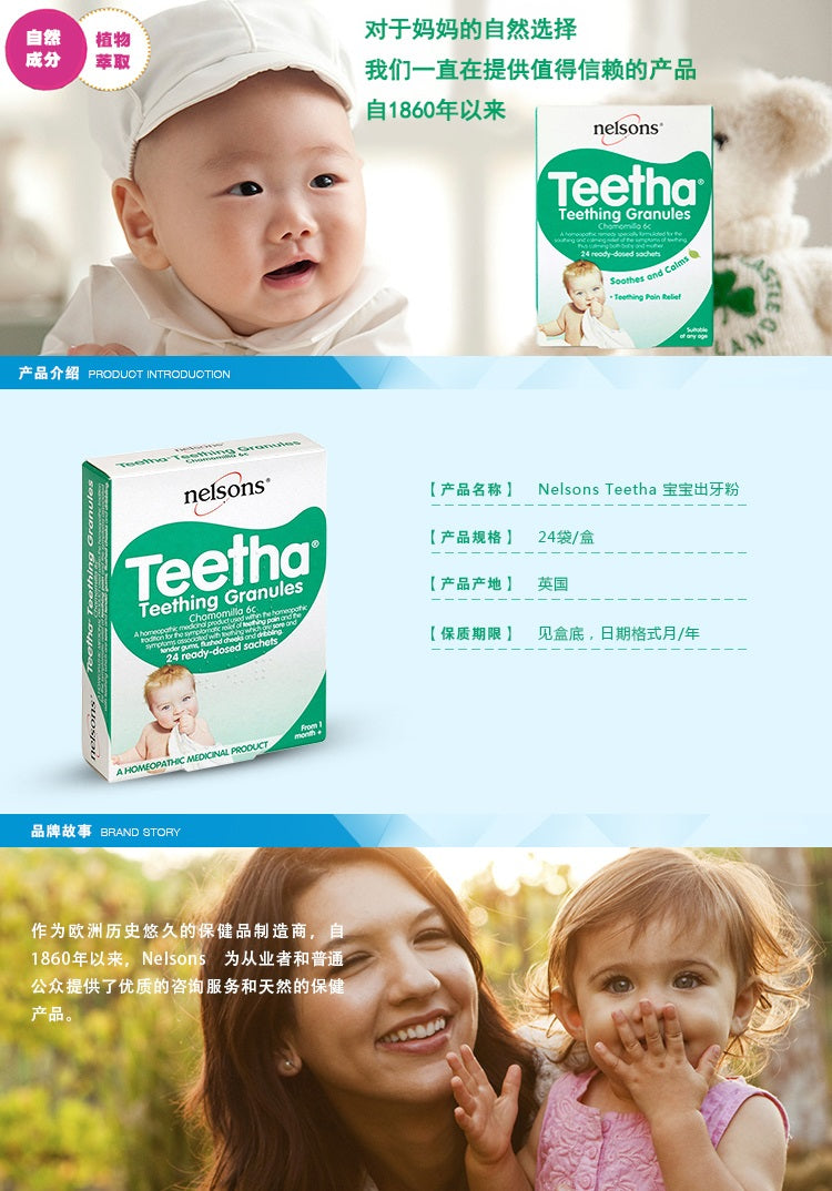 ○ Teetha是用易于服用的颗粒形式。 ○ 洋甘菊成分可以让宝宝在长牙烦躁期间,睡个好觉。