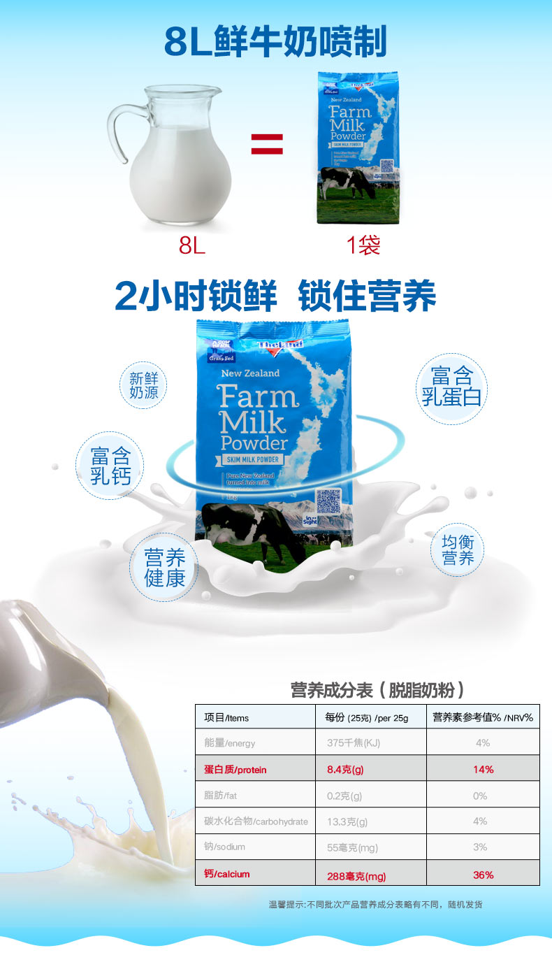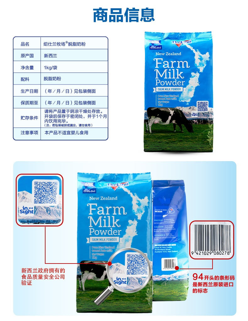 【包邮包税】新西兰Theland纽仕兰成人高钙学生青少年女士中老年脱脂奶粉 1kg