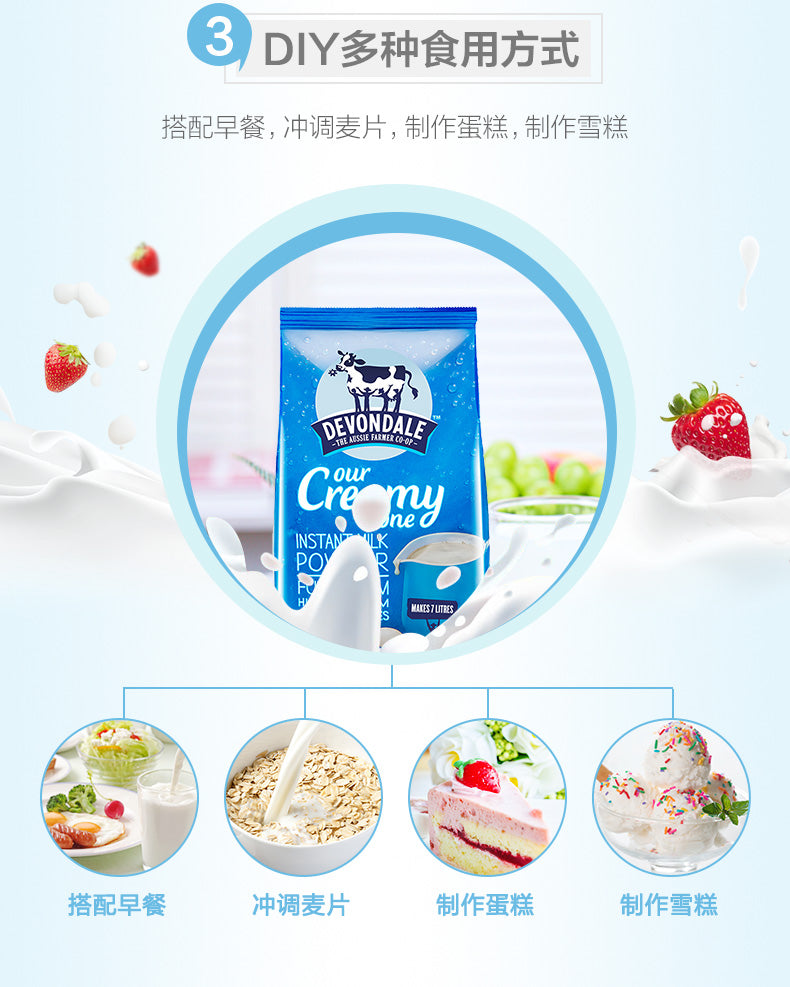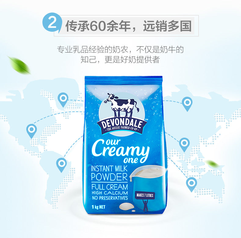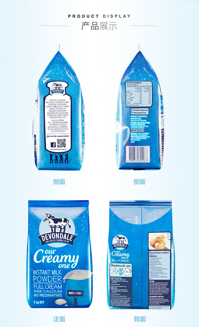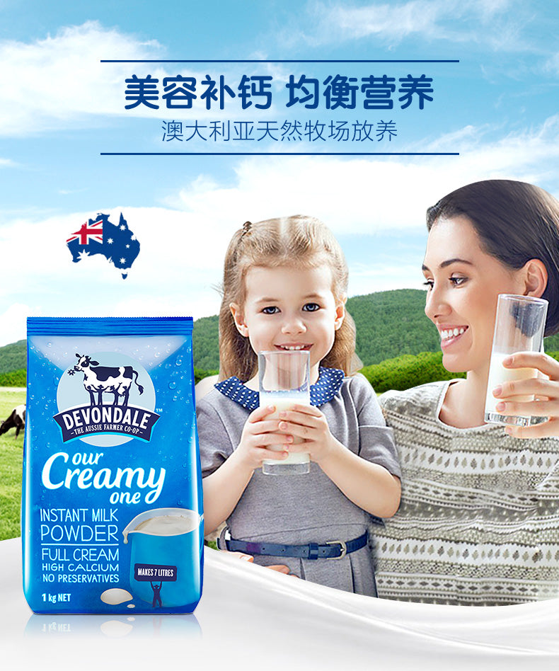 【包邮包税】Devondale德运高钙全脂成人奶粉青少年学生营养早餐牛奶 1kg