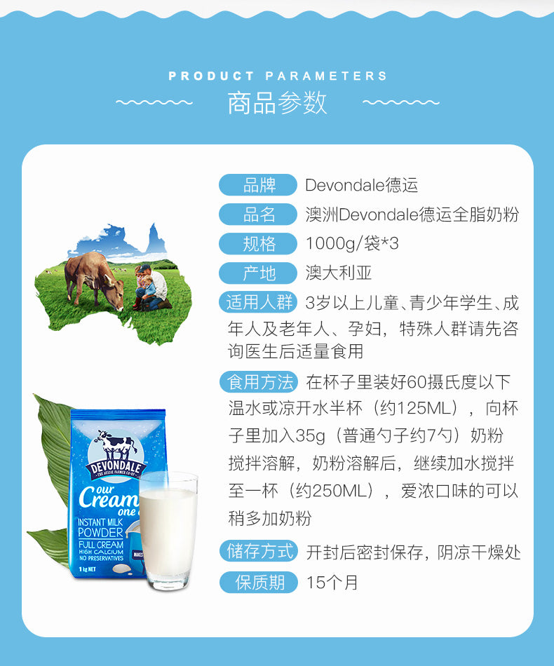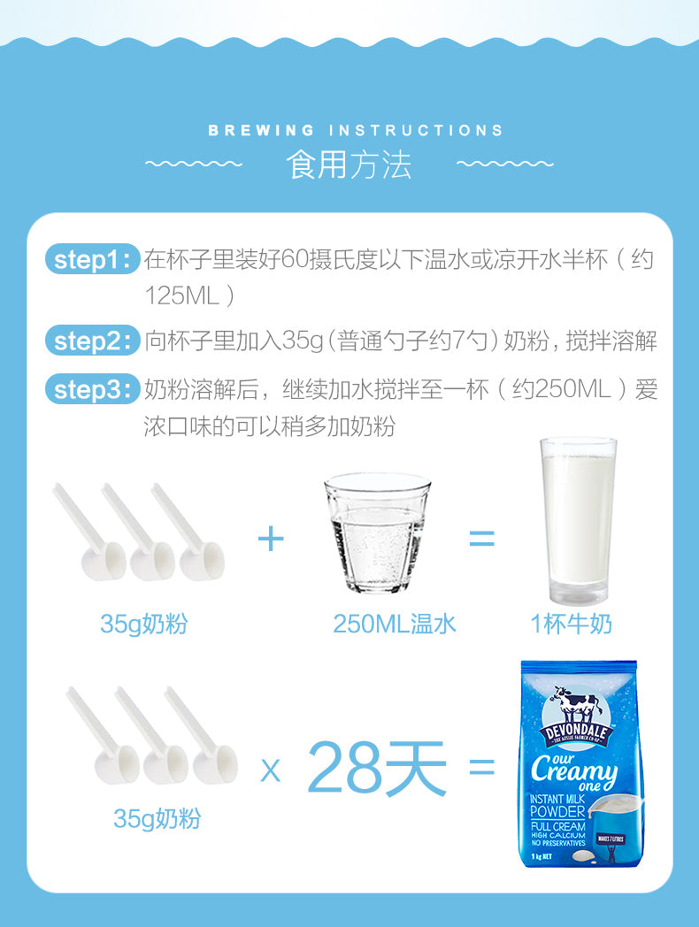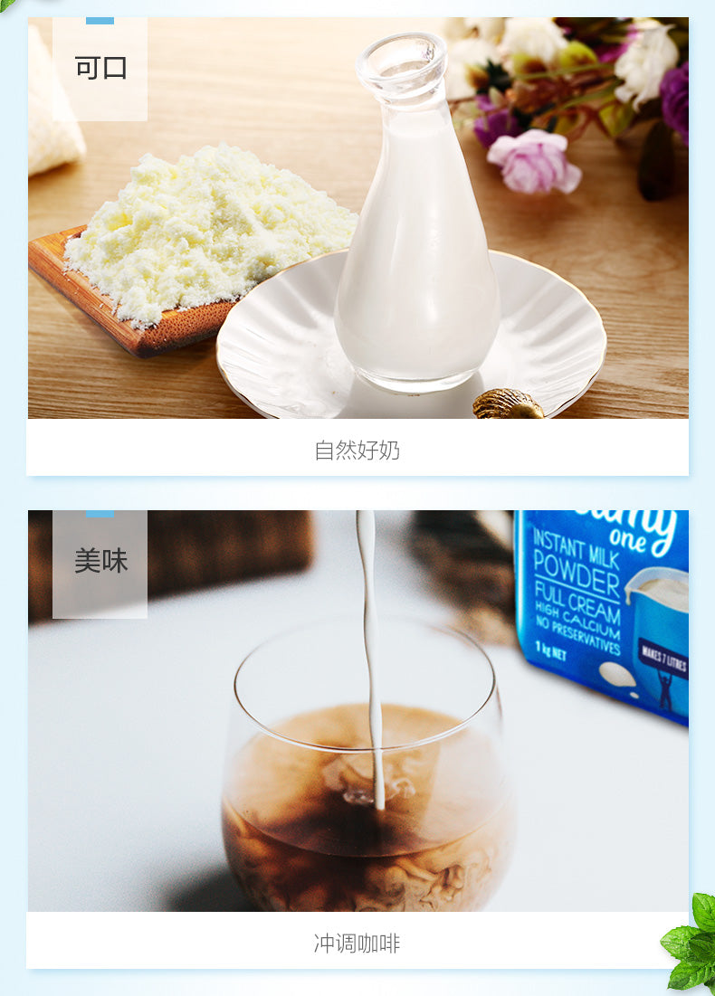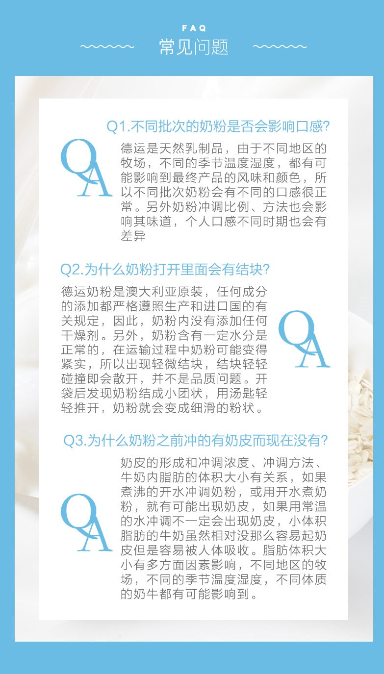 【包邮包税】Devondale德运高钙全脂成人奶粉青少年学生营养早餐牛奶 1kg