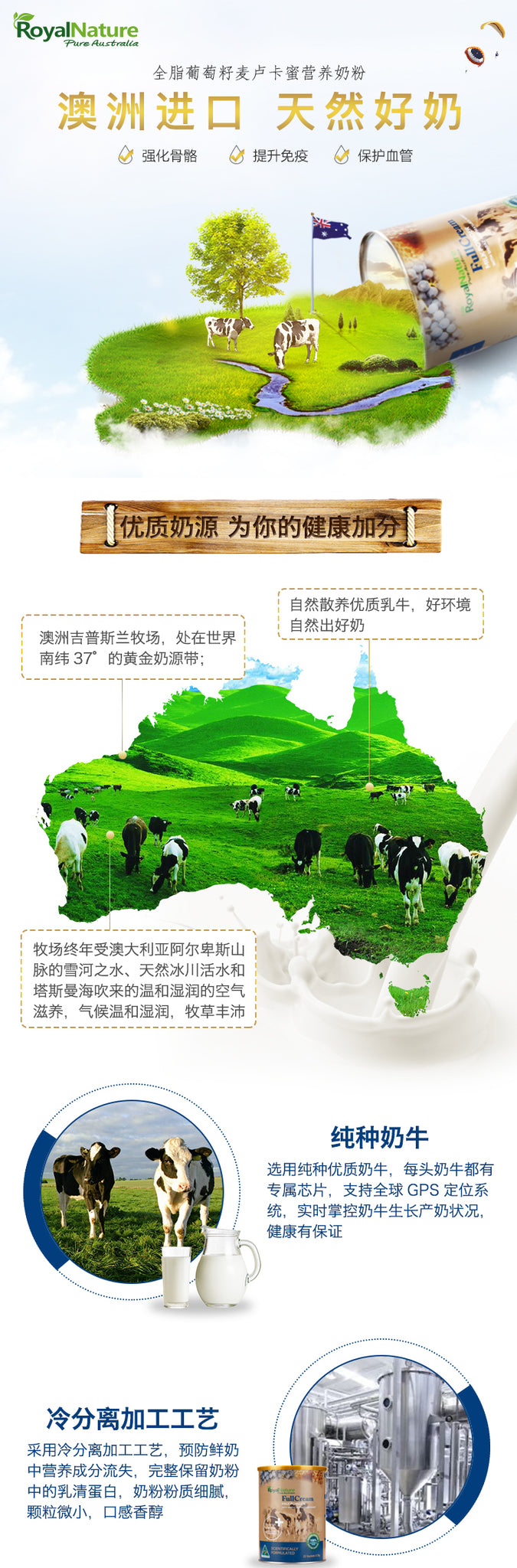 【现货包邮】澳洲Royal Nature皇家天然葡萄籽成人青少年 全脂牛奶粉 22条*25g/550g