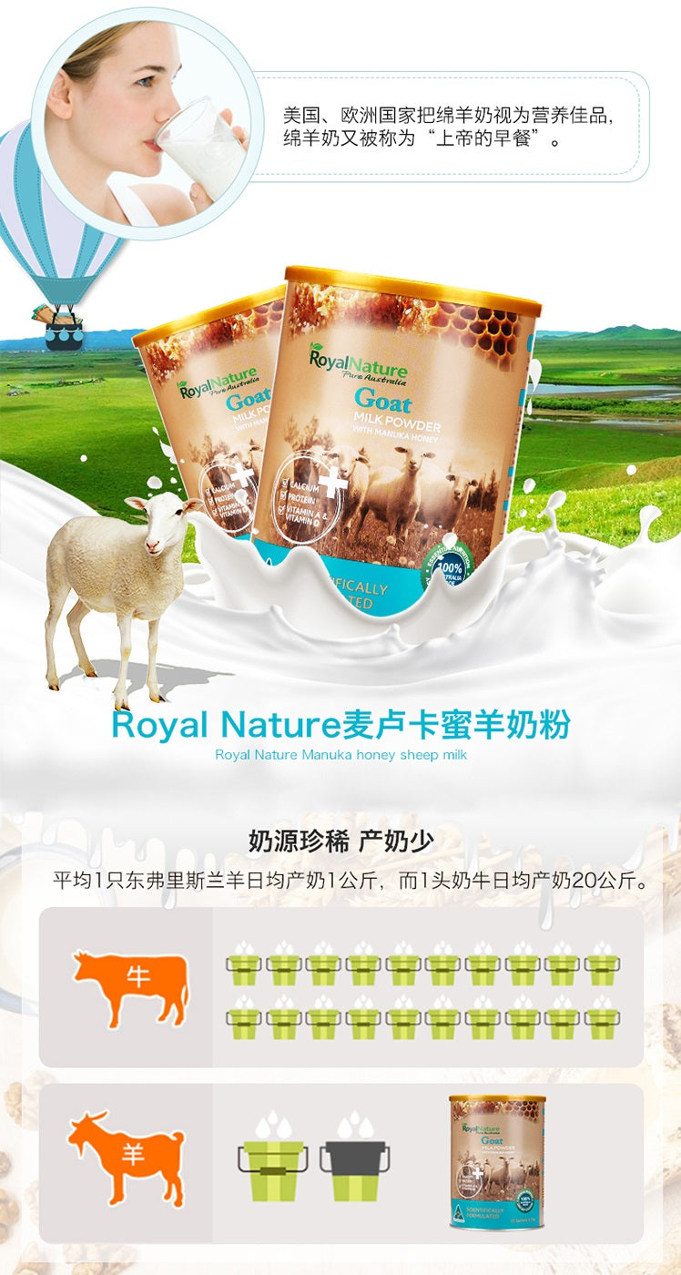 主页 成人奶粉 【现货包邮】澳洲Royal Nature皇家天然麦卢卡蜜成人青少年 羊奶粉 22条*25g/550g