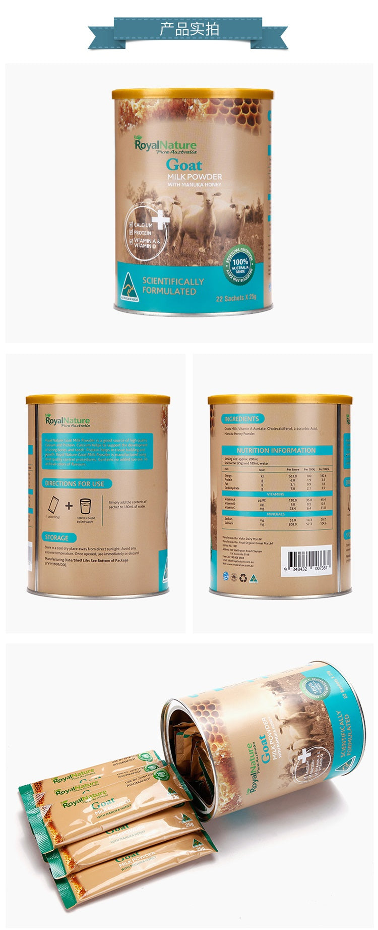 【现货包邮】澳洲Royal Nature皇家天然麦卢卡蜜成人青少年 羊奶粉 22条*25g/550g