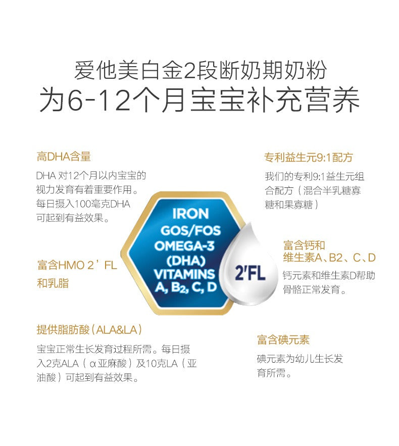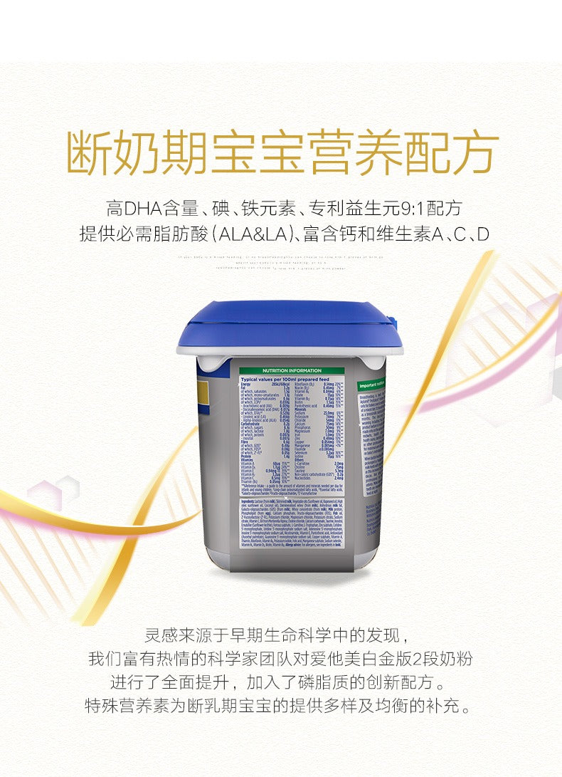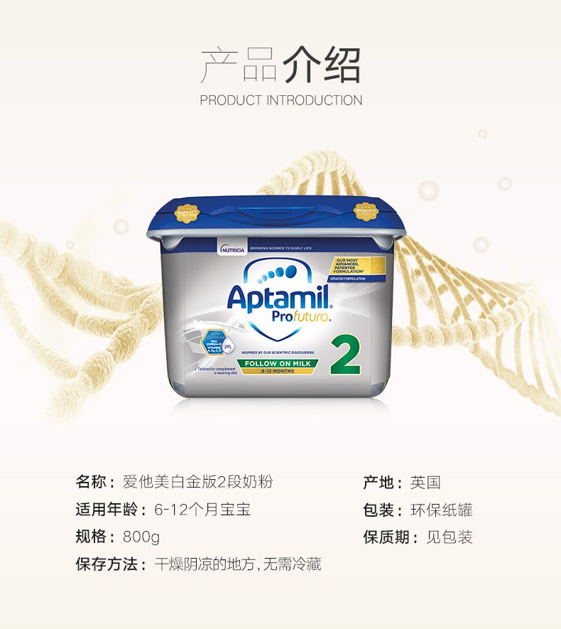 【包邮包税】英国版Aptamil爱他美白金版 2段 (6-12个月) 婴幼儿奶粉 800g