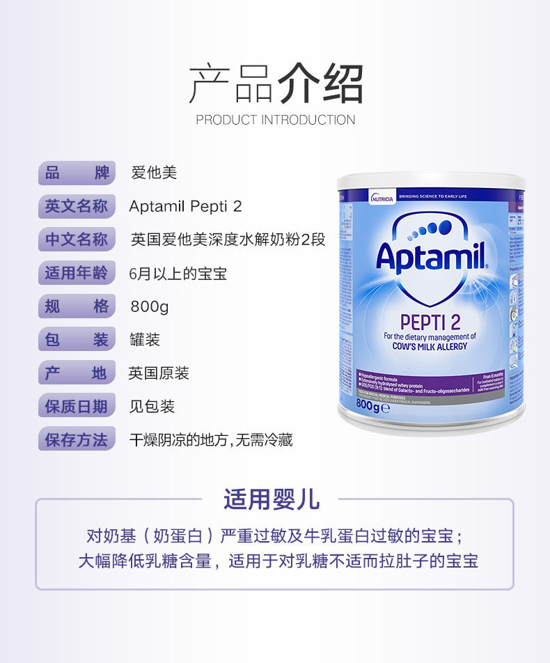 【包邮包税】英国版Aptamil爱他美深度水解奶粉PEPTI 2段(6-12月)800g