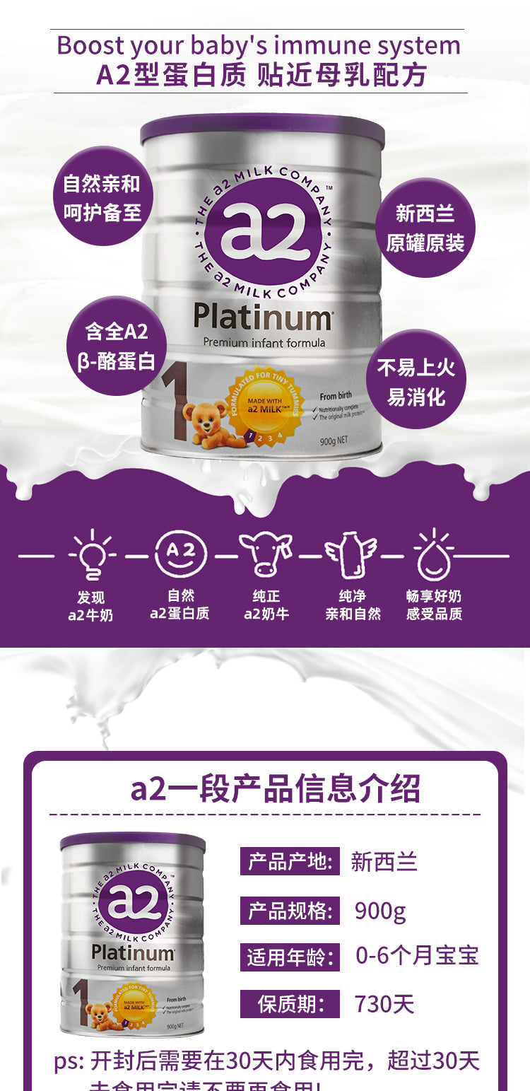 主页 a2 【包邮包税】澳洲a2 Platinum婴幼儿奶粉白金1段(0-6个月) 900g