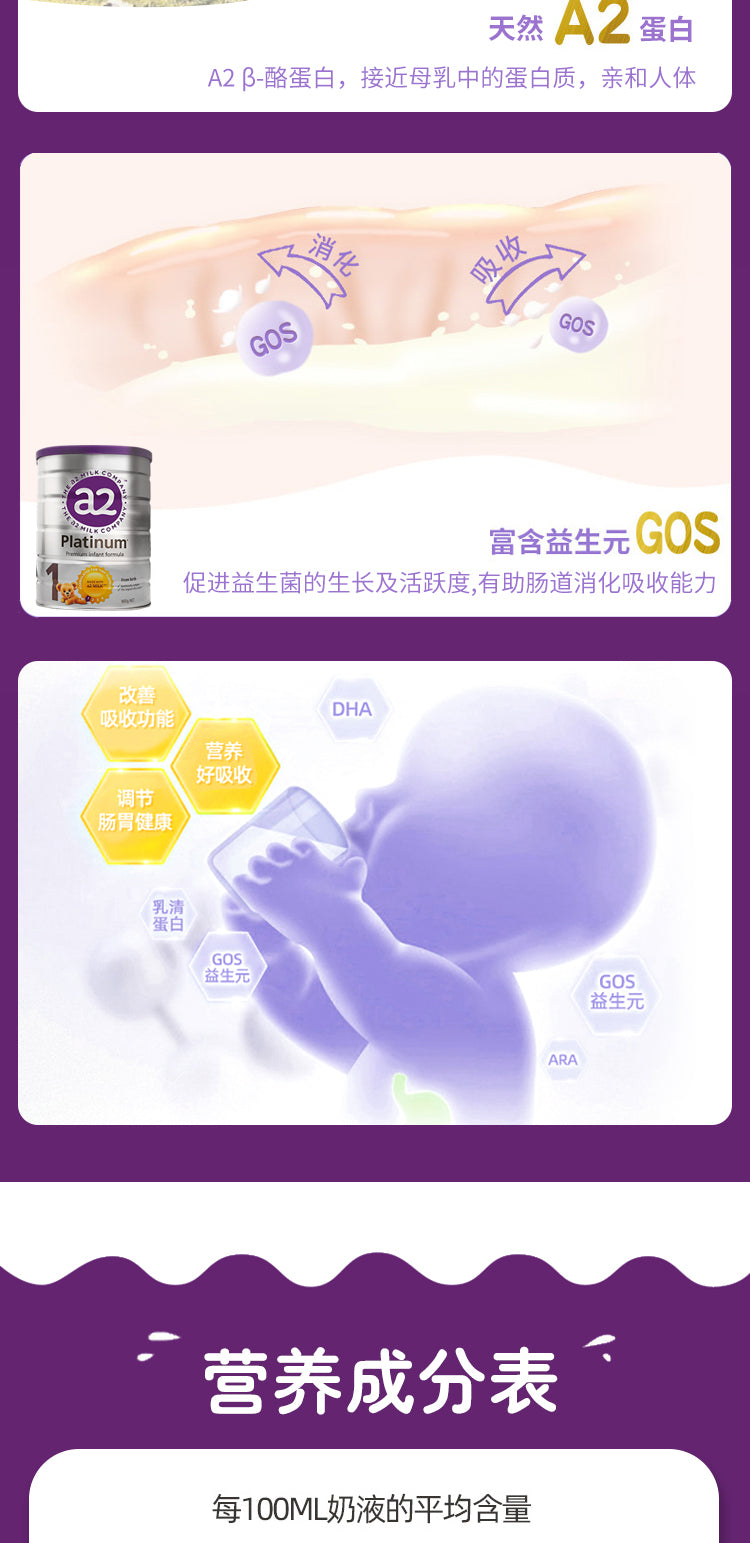 【包邮包税】澳洲a2 Platinum婴幼儿奶粉白金1段(0-6个月) 900g