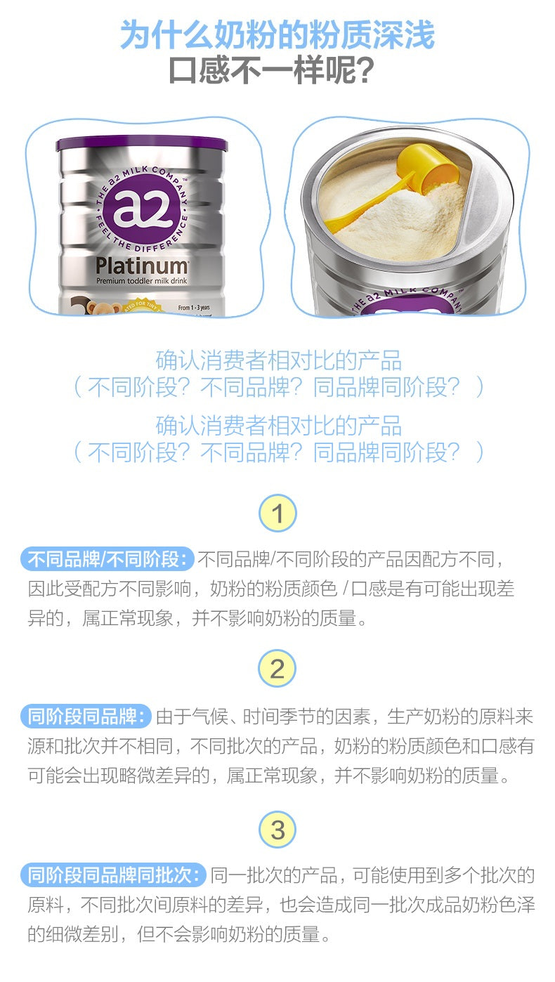 主页 a2 【包邮包税】澳洲a2 Platinum婴幼儿奶粉白金3段(1-3岁) 900g