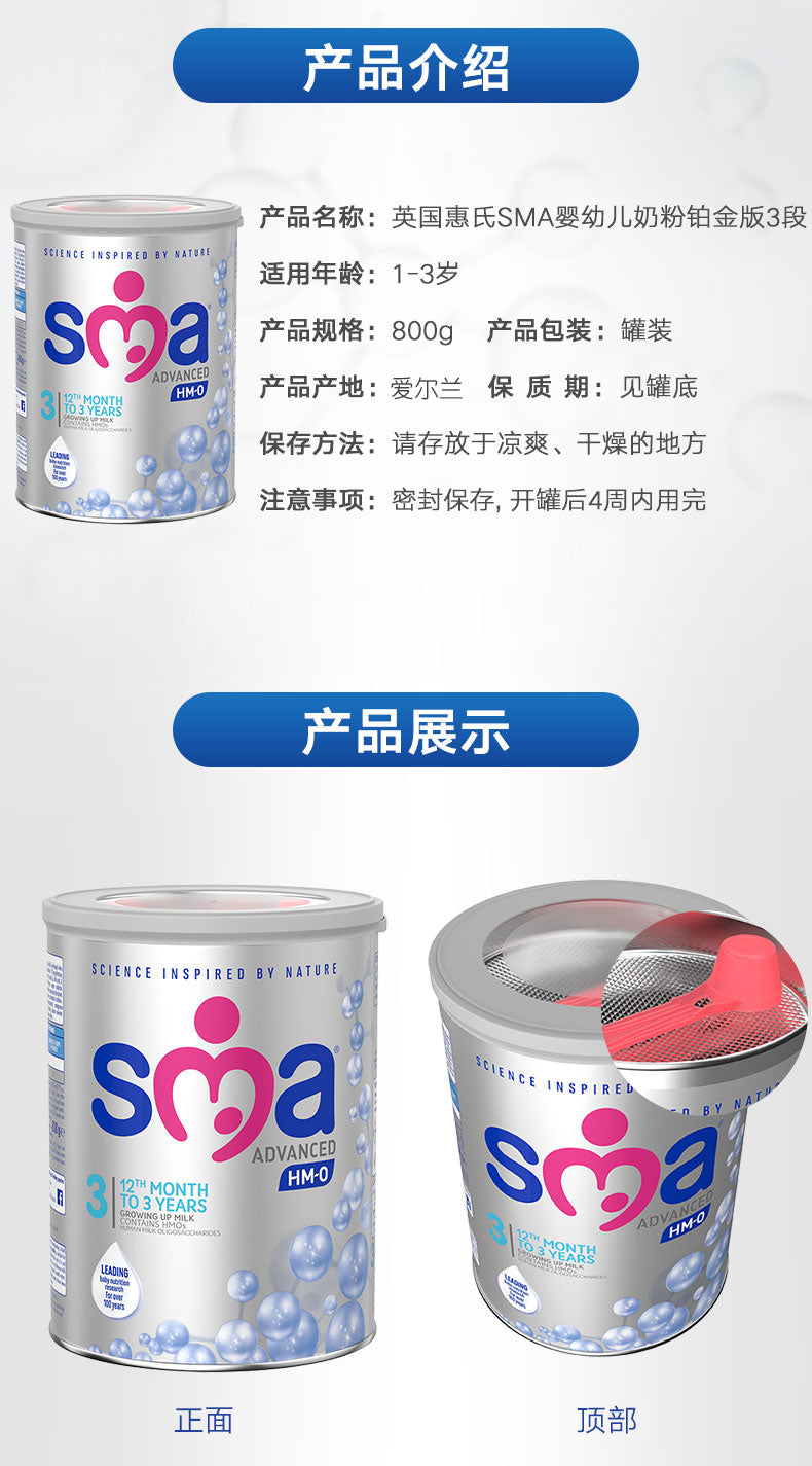 | 品名: | 英国惠氏Wyeth SMA铂金版婴幼儿奶粉 3段800克 英国直邮 |