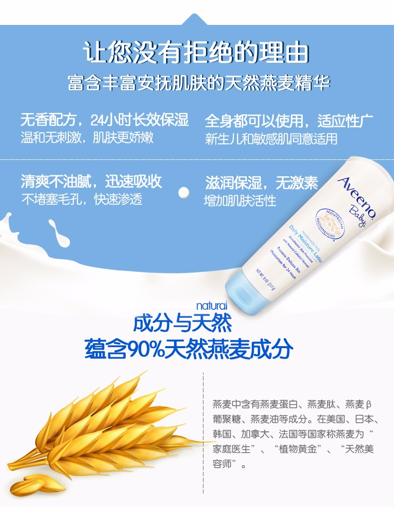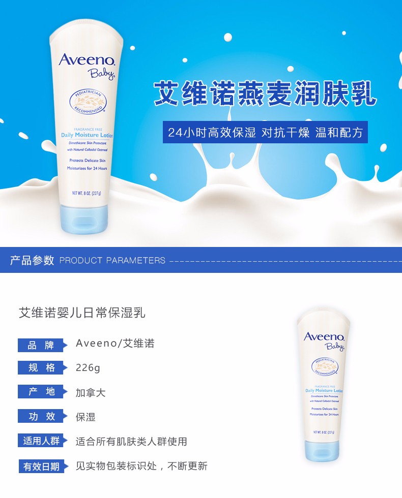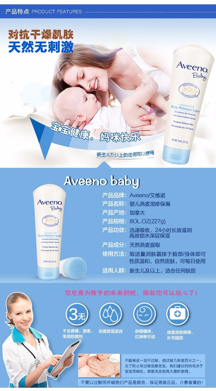 主页 【包邮包税】Aveeno艾维诺婴儿天然燕麦24小时保湿乳霜 浅蓝盖 227g