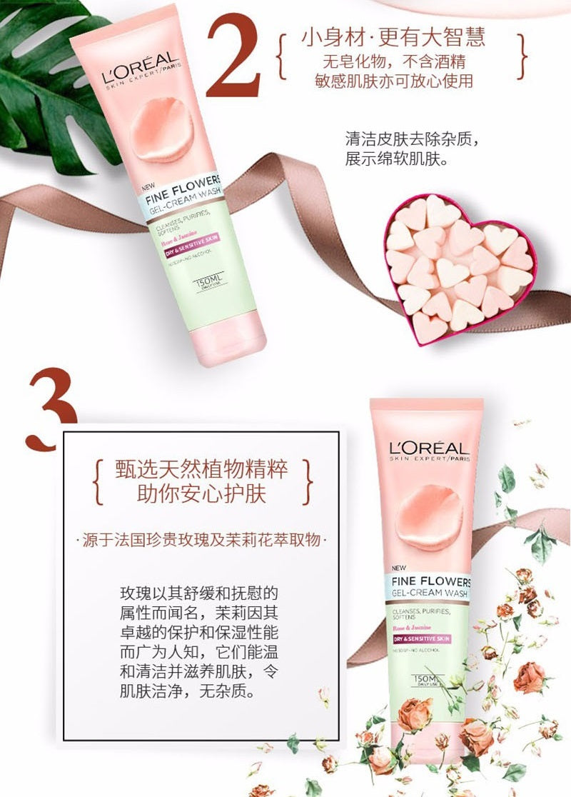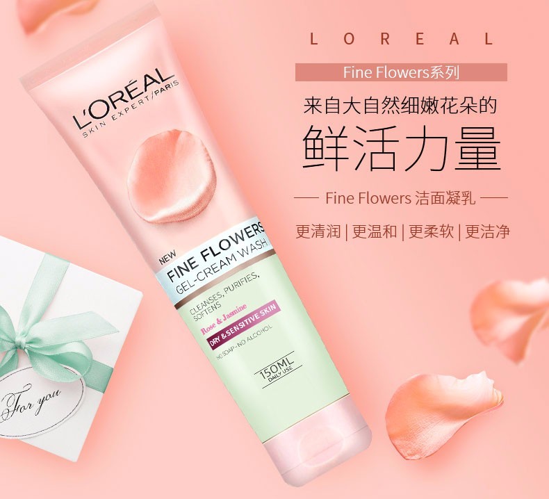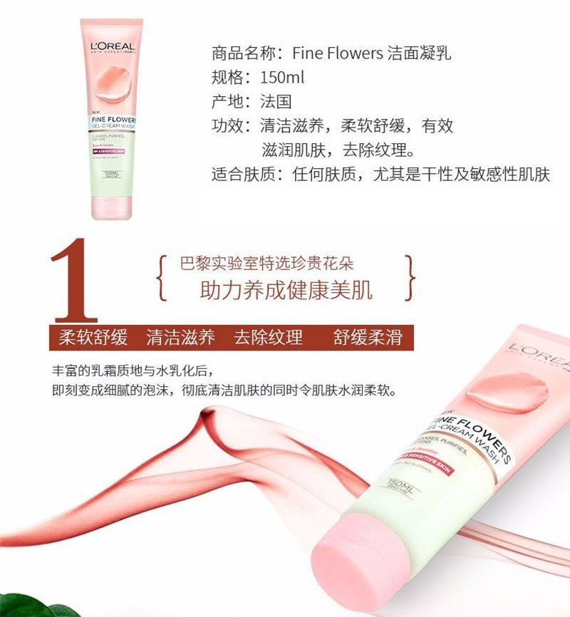 【包邮包税】L‘oreal 欧莱雅FINE Flowers玫瑰茉莉精华洁面乳卸妆洗面奶 150ml