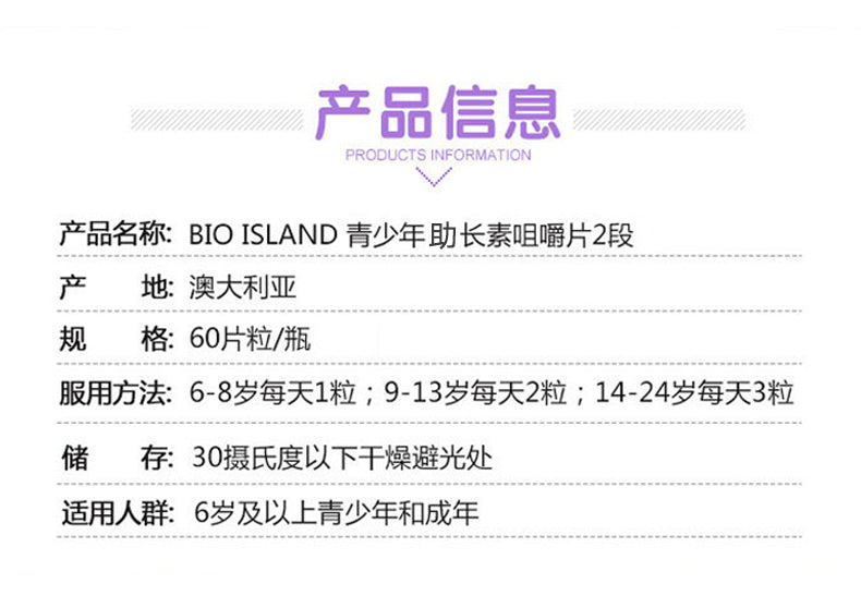 主页 Bio island/佰澳朗德&比奥岛 【包邮包税】澳洲Bioisland儿童青少年黄金赖氨酸助长素2段 60粒