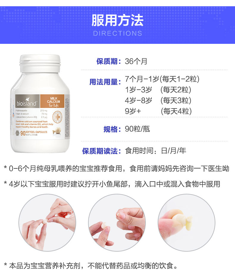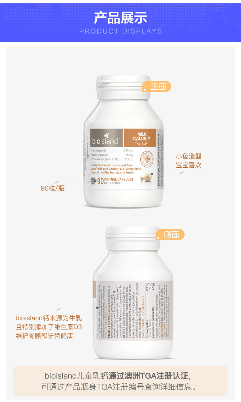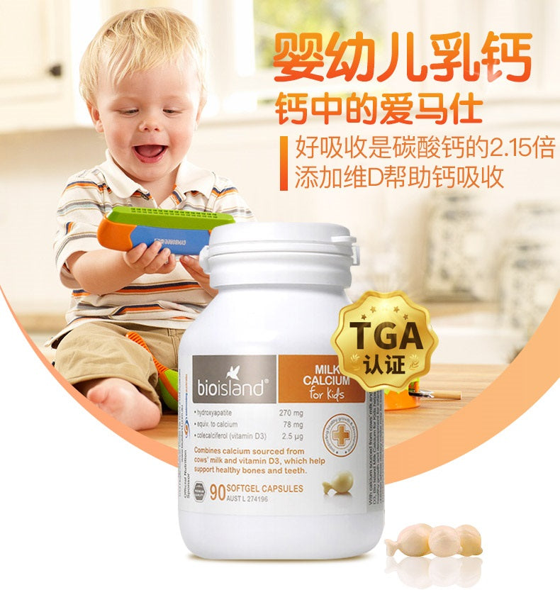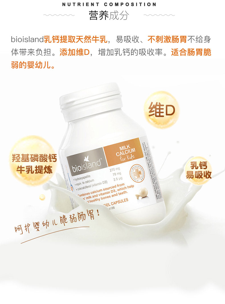 主页 Bio island/佰澳朗德&比奥岛 【包邮包税】澳洲Bioisland MILK CALCIUM forkids婴幼儿童宝宝液体乳钙胶囊补钙促骨骼生长 90粒