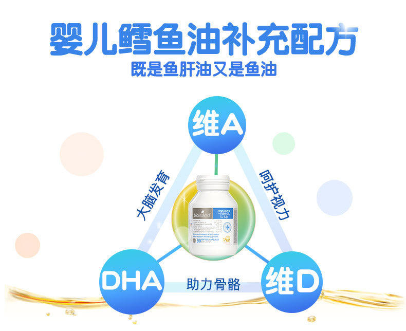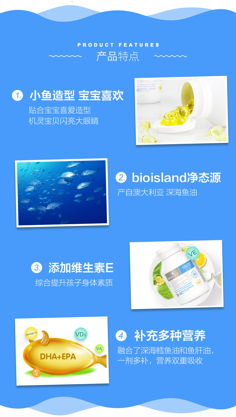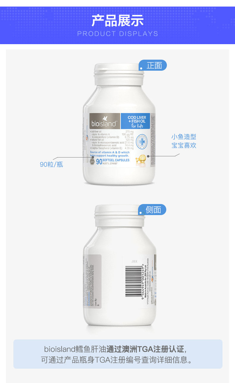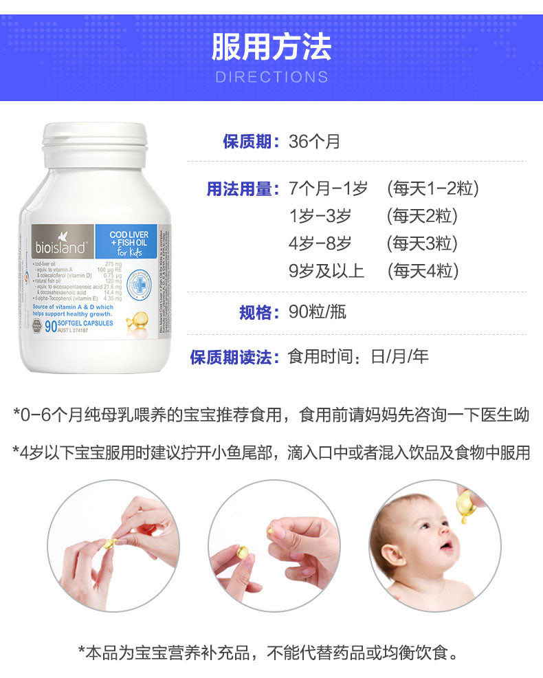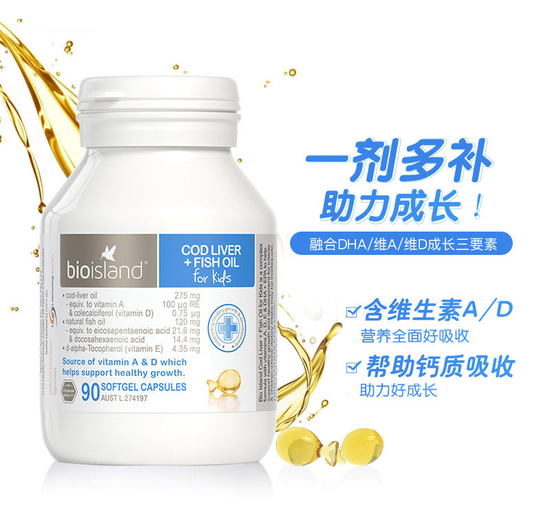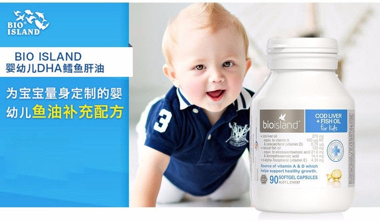【包邮包税】澳洲Bioisland COD LIVER+FISH OIL forkids婴幼儿童宝宝鳕鱼肝油补脑鱼油护眼软胶囊 90粒