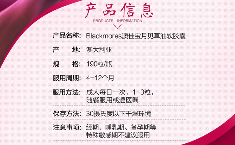 【包邮包税】BLACKMORES澳佳宝EVENING PRIMROSE OIL月见草油胶囊190粒