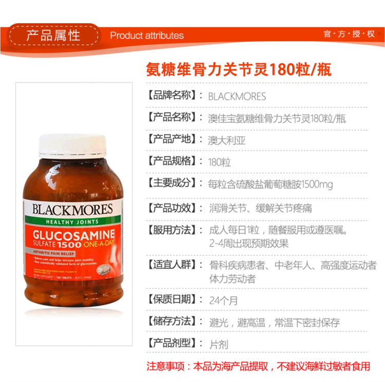 【包邮包税】BLACKMORES澳佳宝CLUCOSAMINE氨糖维骨力关节灵软骨素 180粒