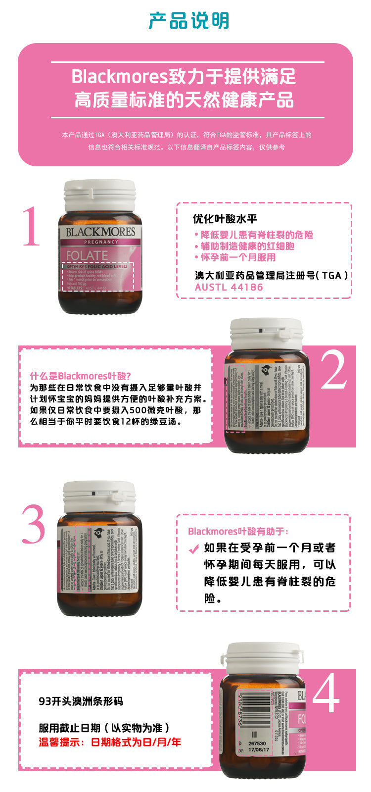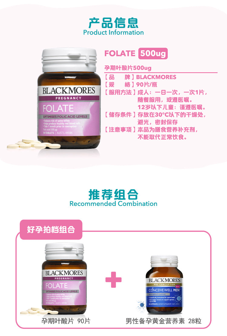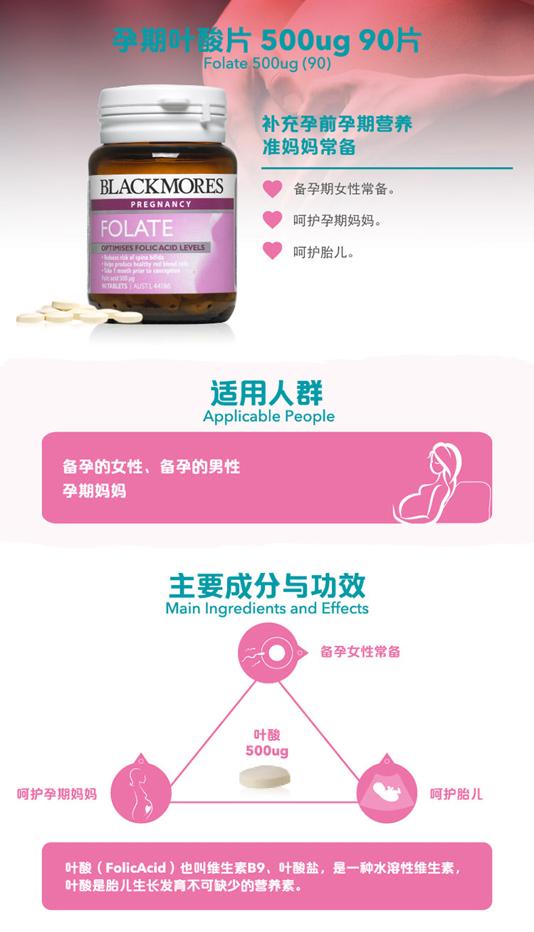 主页 BLACKMORES/澳佳宝 【包邮包税】BLACKMORES澳佳宝FOLATE孕妇天然叶酸片 90粒