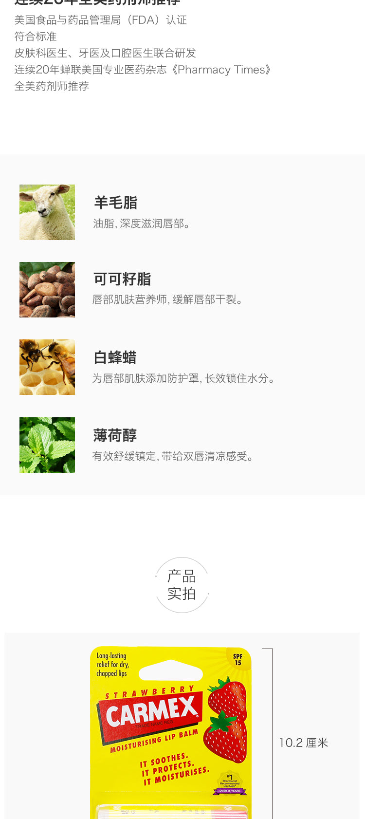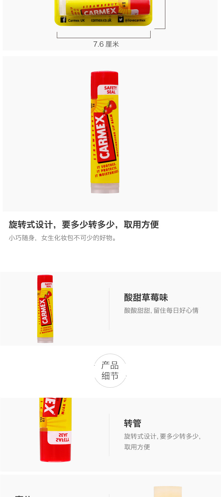 | 品名: | 美国小蜜缇CARMEX修护唇膏草莓味4.25g/支 |