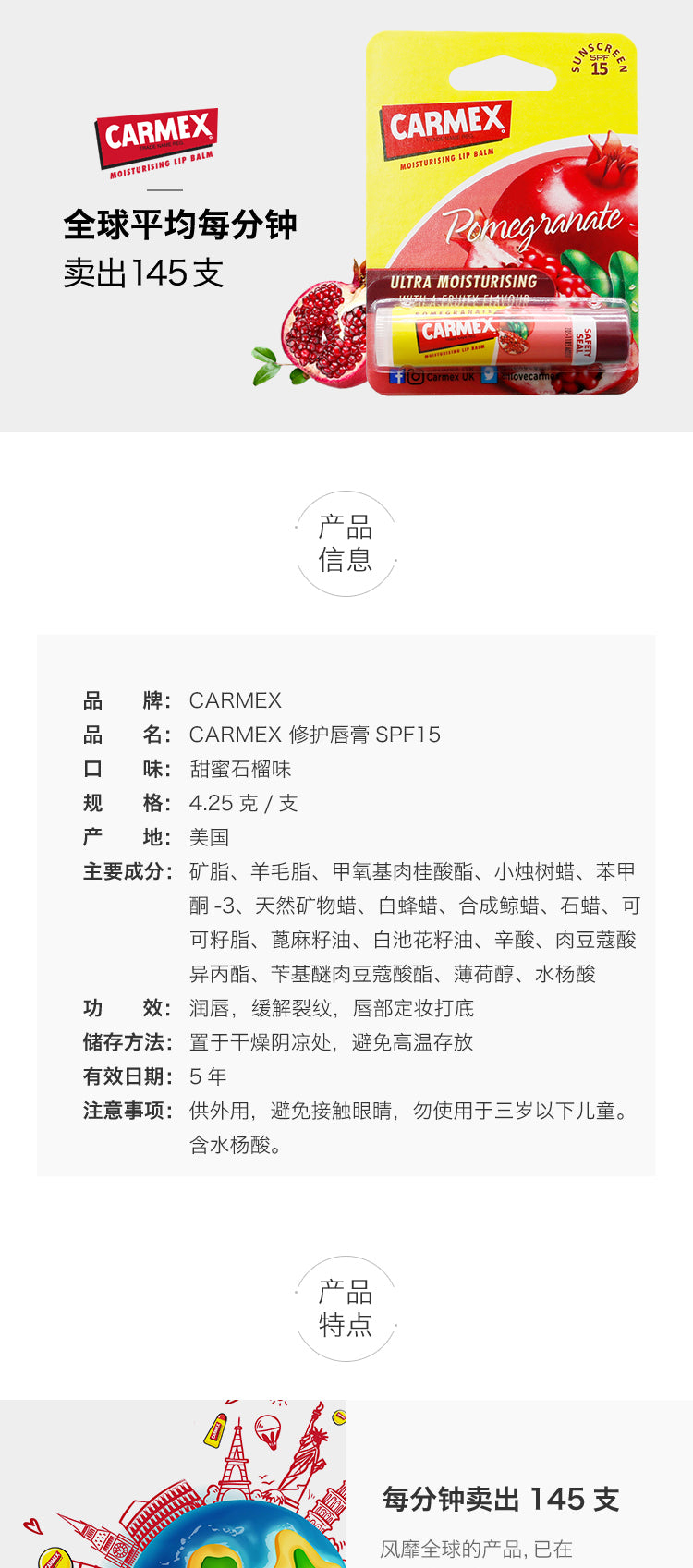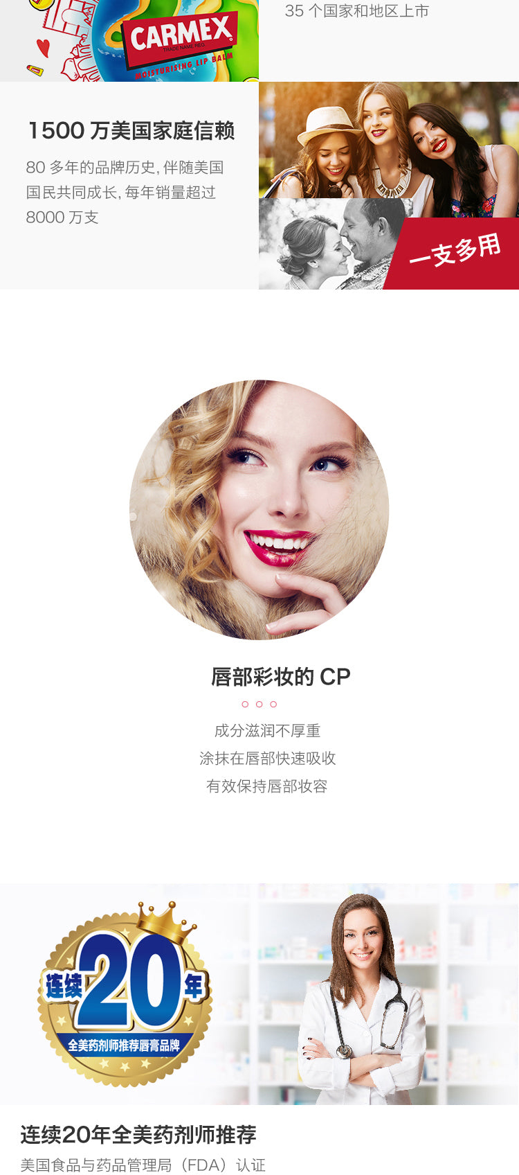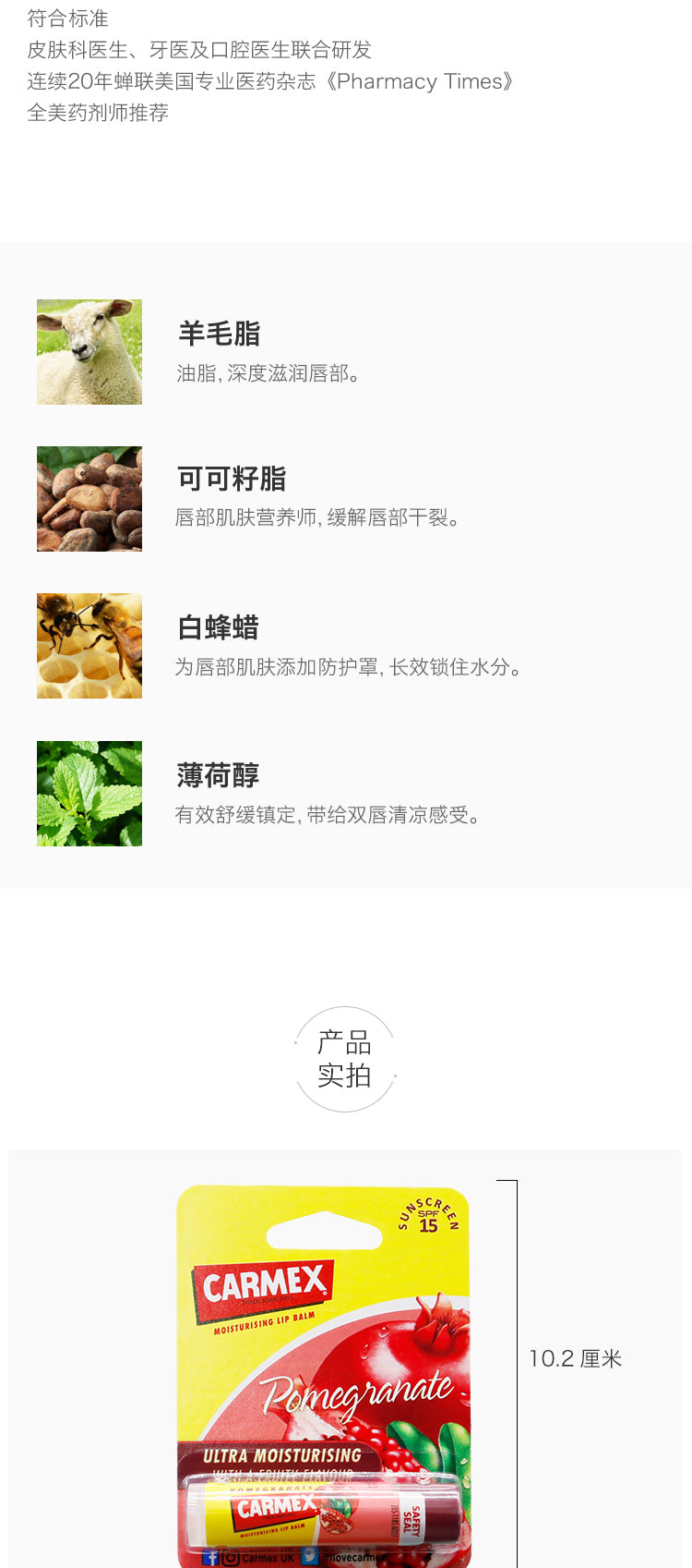 | 品名: | 美国小蜜缇CARMEX修护唇膏石榴味4.25g/支 |