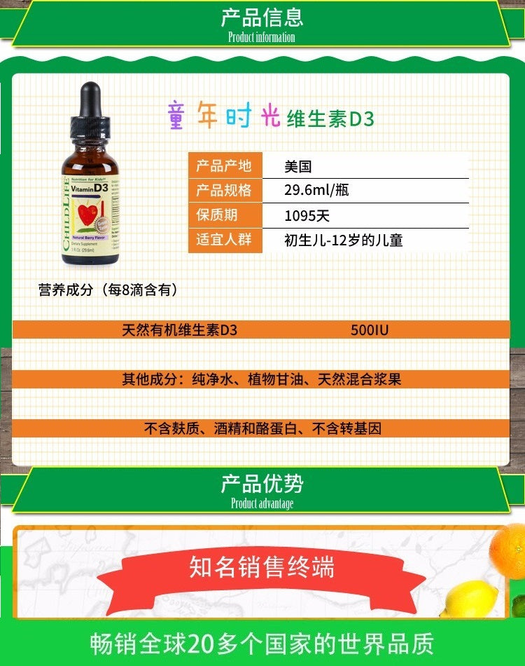 主页 Childlife/童年时光 【包邮包税】Childlife童年时光婴幼儿维生素D3滴剂 29.6ml