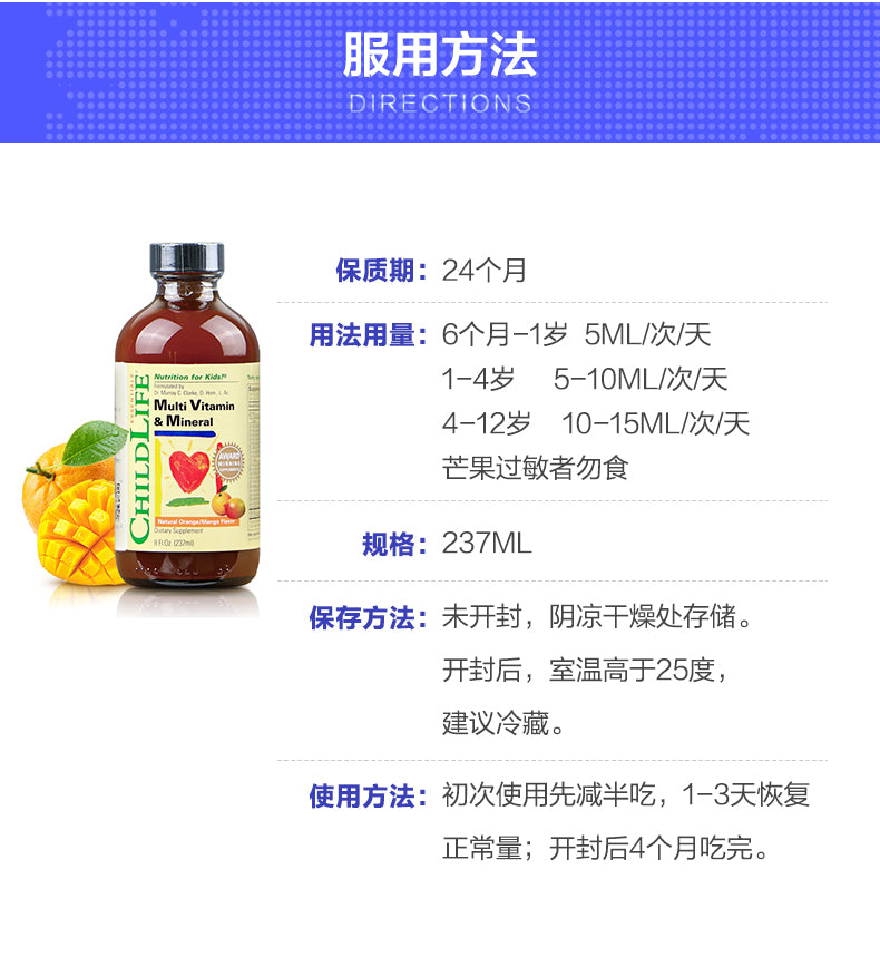 【包邮包税】Childlife童年时光婴幼儿23种复合维生素营养补充液 237ml