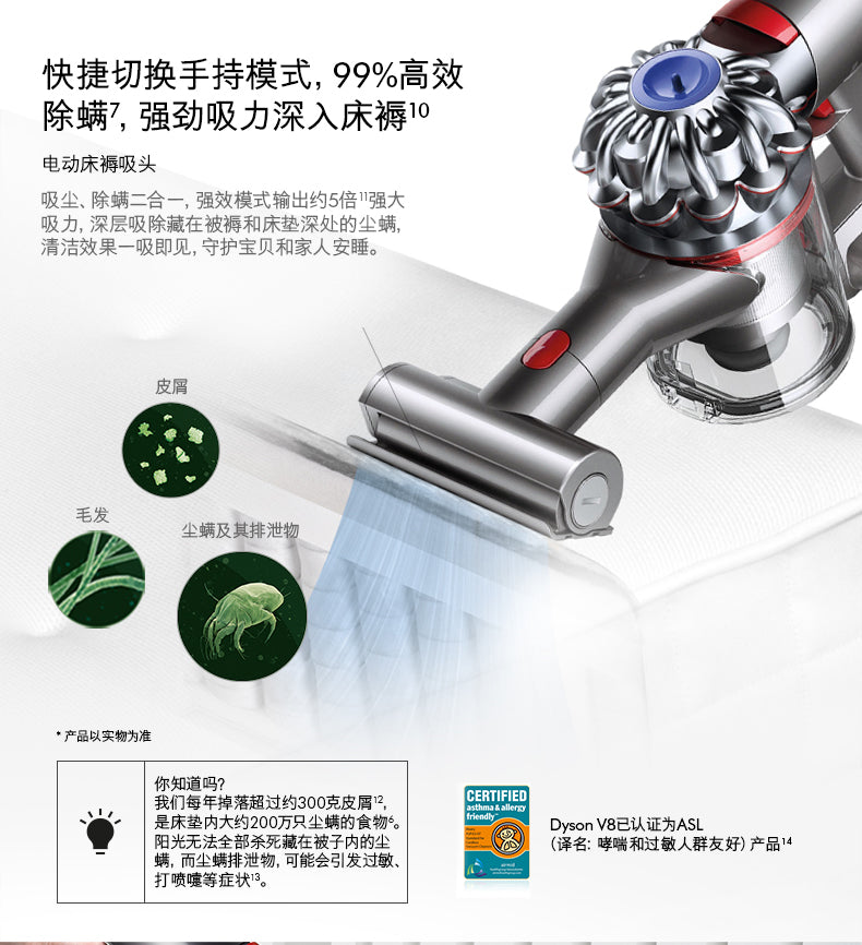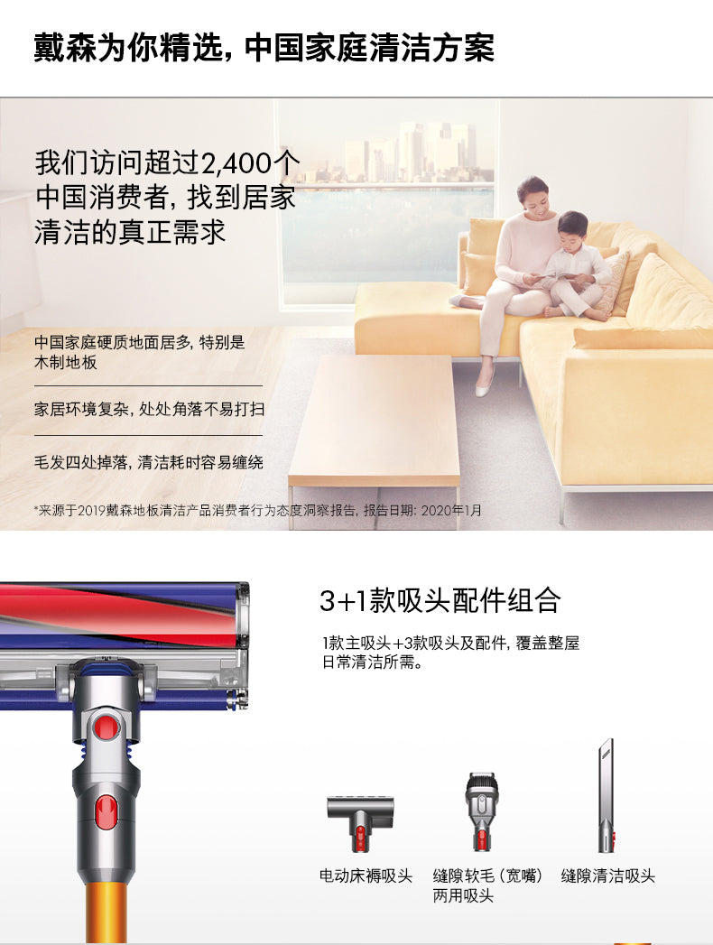 【现货包邮】国行dyson戴森吸尘器手持吸尘器家用除螨无线宠物家庭适用 V8 Fluffy Origin  4吸头