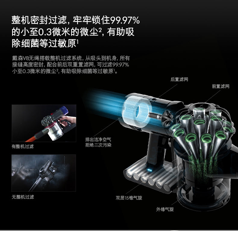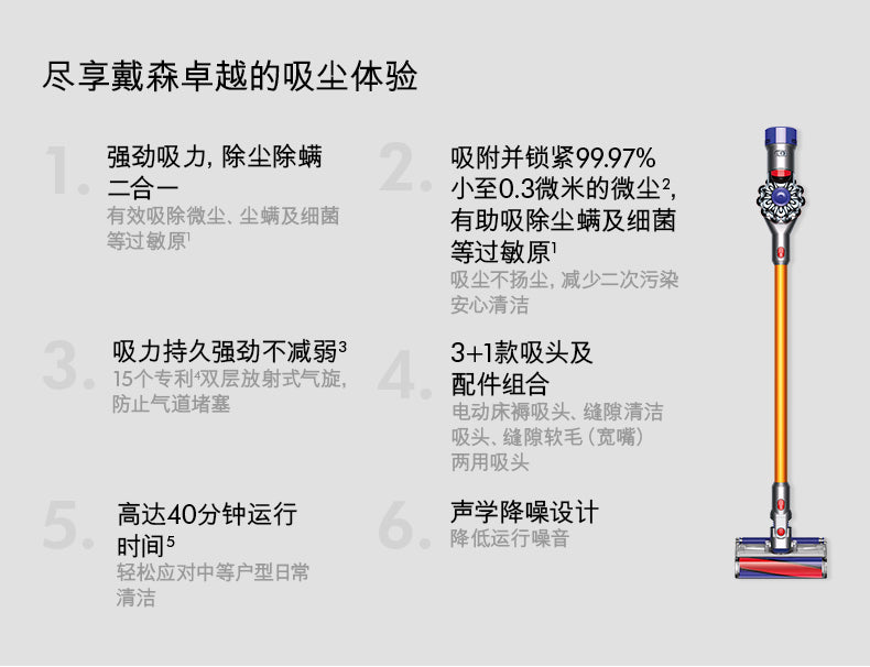 【现货包邮】国行dyson戴森吸尘器手持吸尘器家用除螨无线宠物家庭适用 V8 Fluffy Origin 4吸头