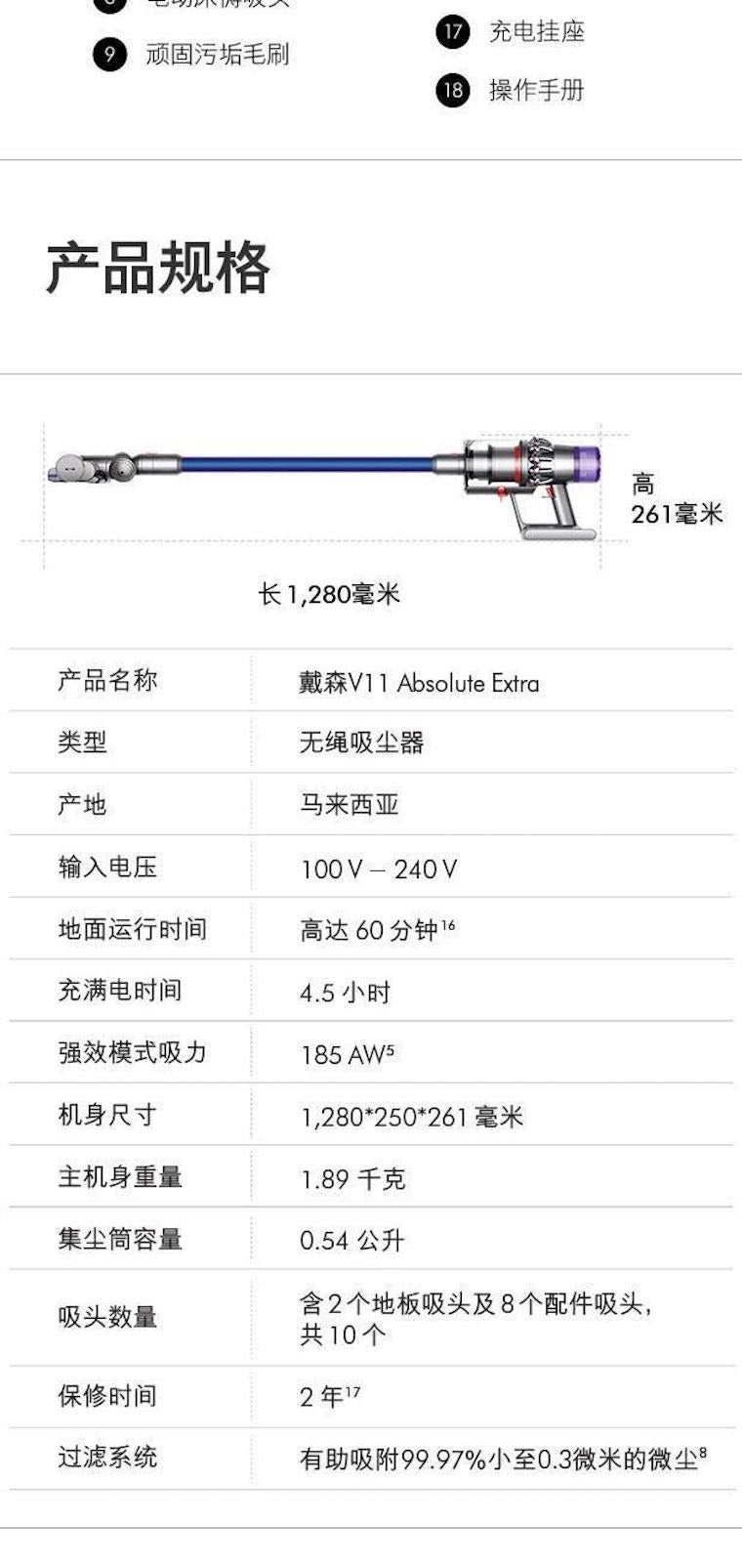 【现货包邮】国行DYSON戴森手持吸尘器家用除螨无线宠物家庭适用  V11 Absolute Extra(12配件)