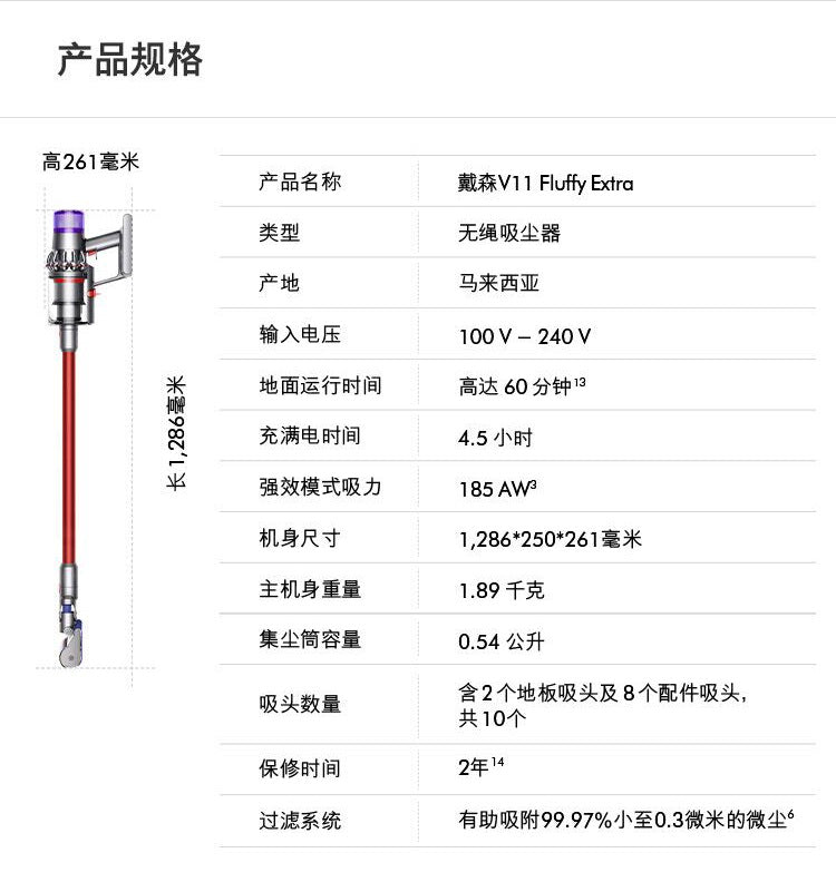 【现货包邮】国行Dyson戴森手持吸尘器家用除螨无线宠物家庭适用 V11 Fluffy Extra (升级版11配件)