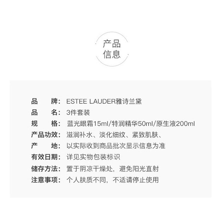 主页 Estee Lauder/雅诗·兰黛 【包邮包税】Estee Lauder雅诗兰黛(蓝光眼霜15ml+特润精华50ml+原生液200m)樱花三件套