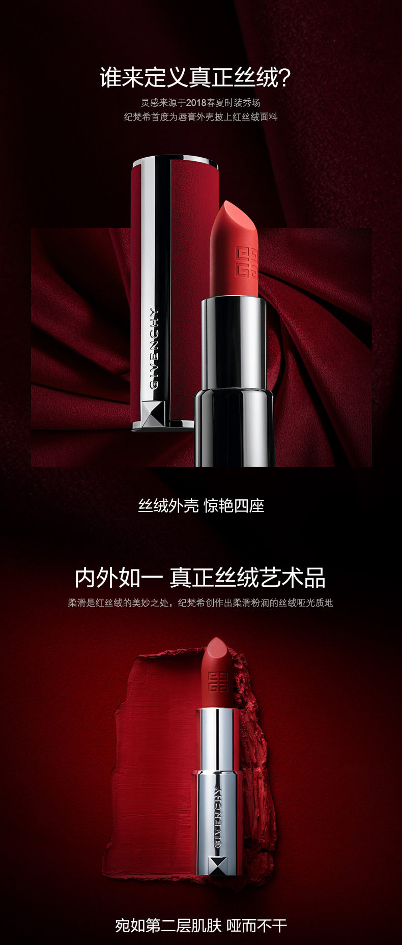 【包邮包税】GIVENCHY纪梵希高定香榭美炸红丝绒唇膏 红管小羊皮口红