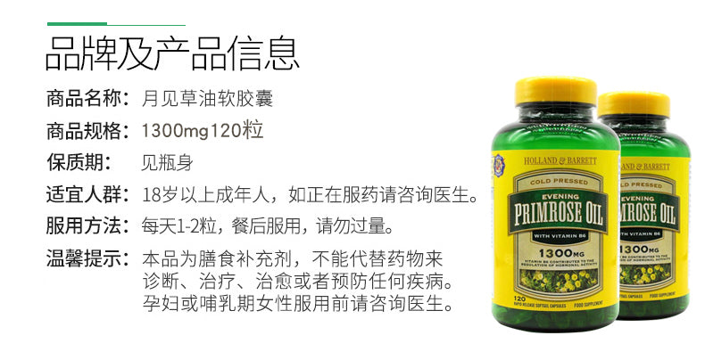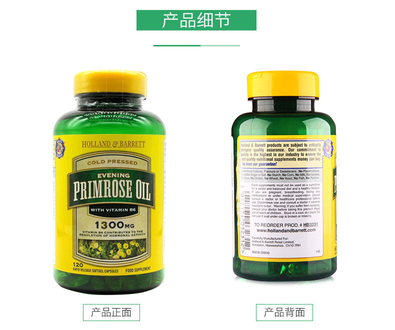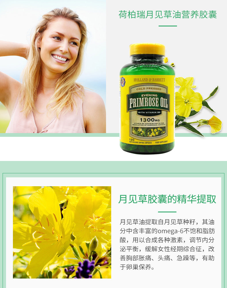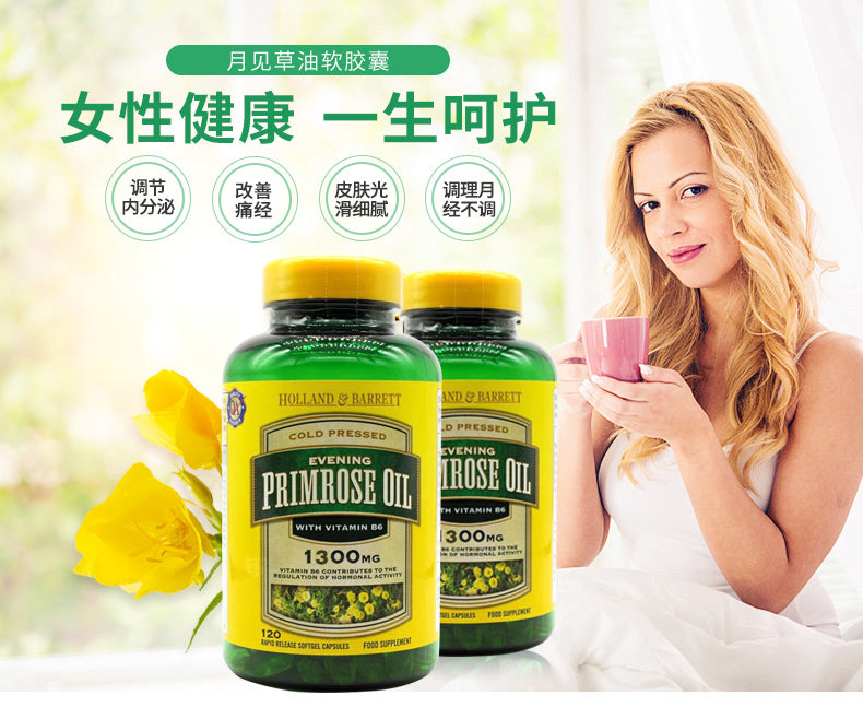 【包邮包税】荷柏瑞(Holland & Barrett)月见草油软胶囊改善痛经护卵巢 1000mg 120粒