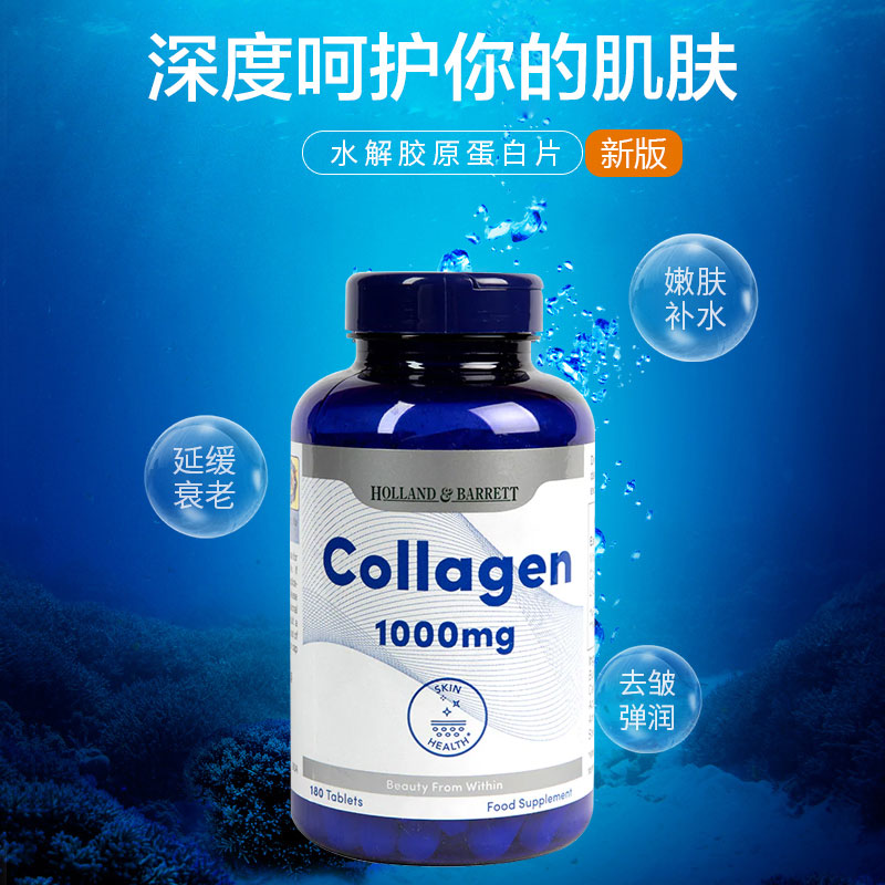 【包邮包税】荷柏瑞(Holland & Barrett)水解胶原蛋白 去皱美白补水 1000mg 180粒