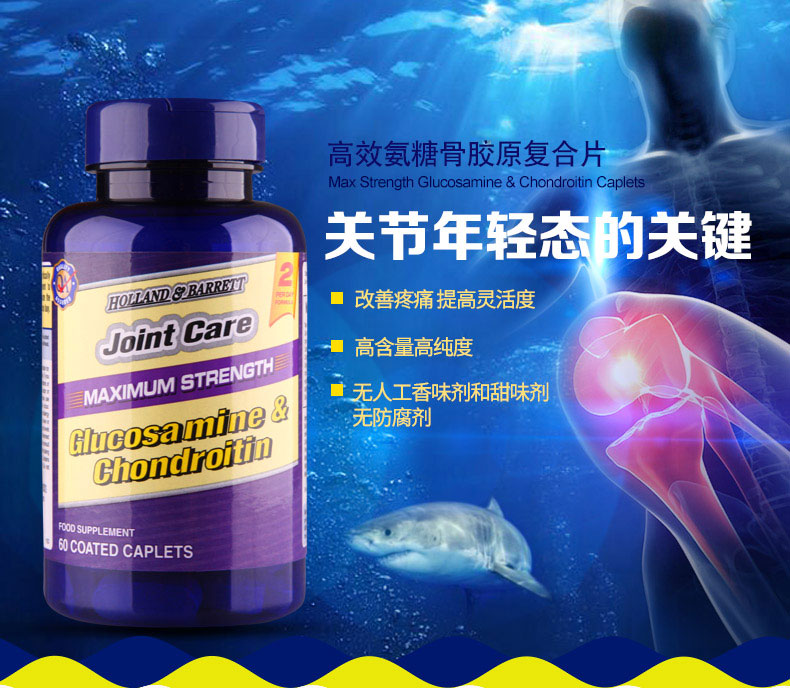 【现货包邮】荷柏瑞(Holland & Barrett)高强度葡萄糖胺和软骨素复合物养护关节 2倍增强版 60粒