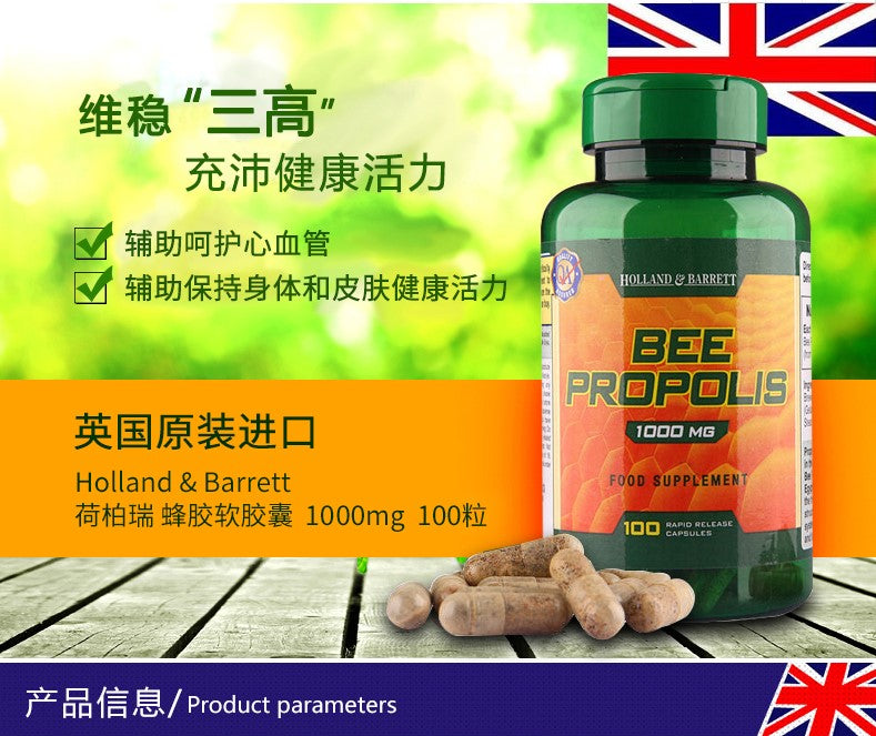 主页 H&B Collection 【现货包邮】荷柏瑞(Holland & Barrett)BEE PROPOLIS天然蜂胶提取物胶囊 1000MG100粒