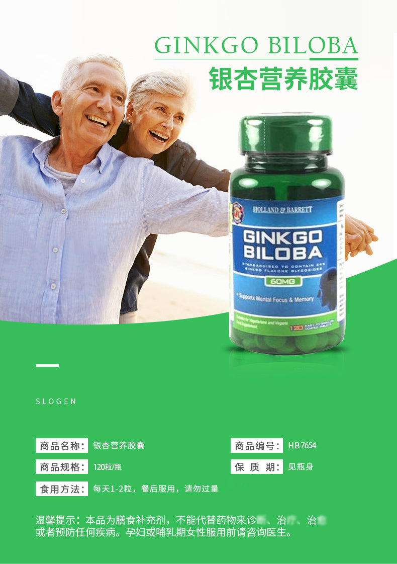 【现货包邮】荷柏瑞(Holland & Barrett)GINKGO BILOBA 银杏片 60mg 120粒