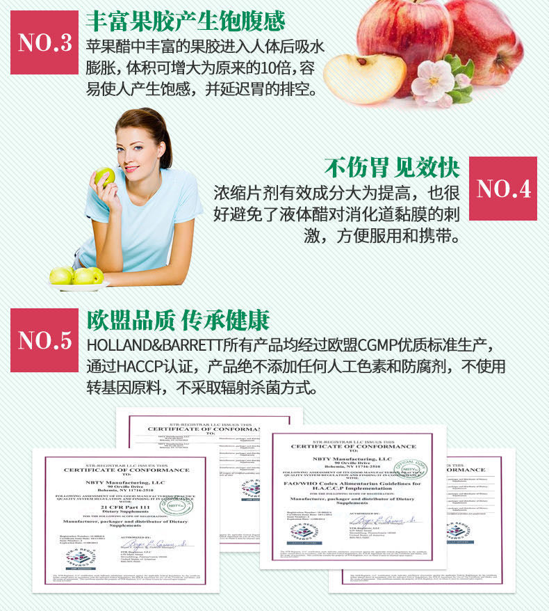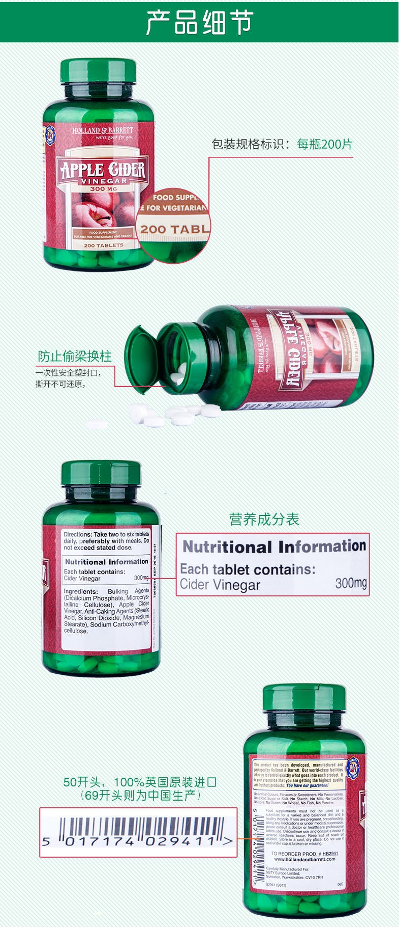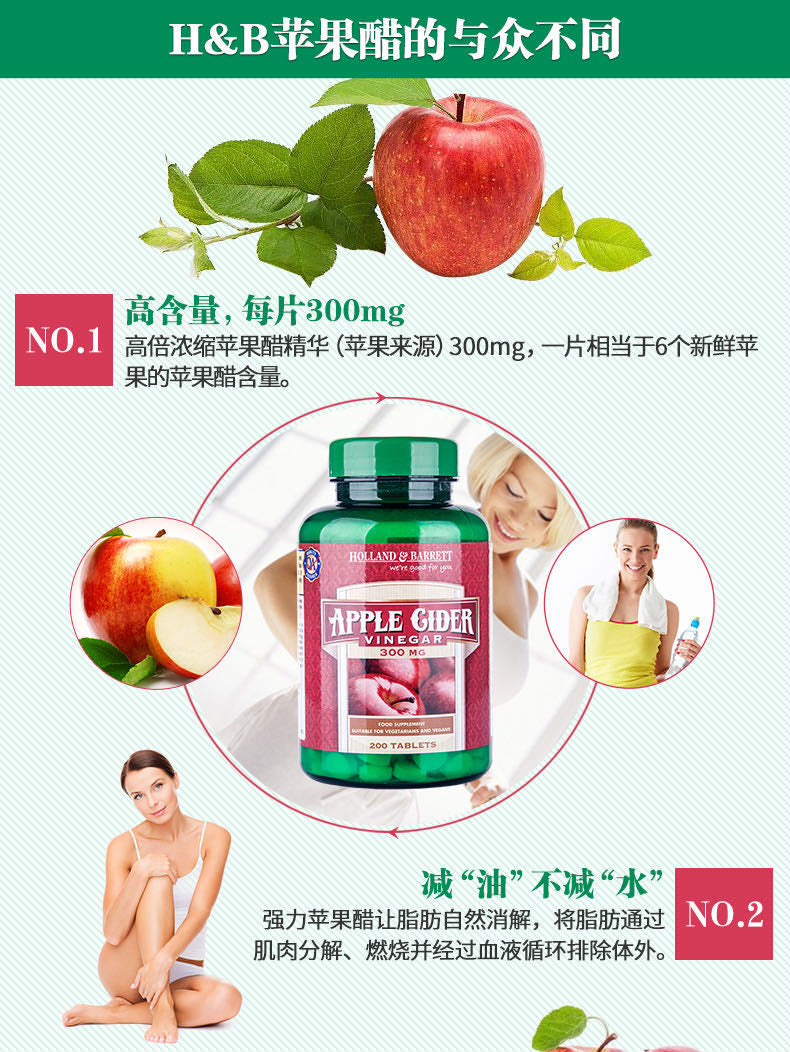 【现货包邮】荷柏瑞(Holland & Barrett)APPLE CIDER控制体重 瘦身维持身材 苹果醋酸片 300mg 400粒