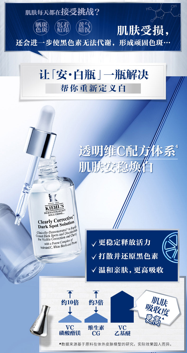 【包邮包税】Kiehl's科颜氏集焕白均衡亮肤淡斑精华液  30ml